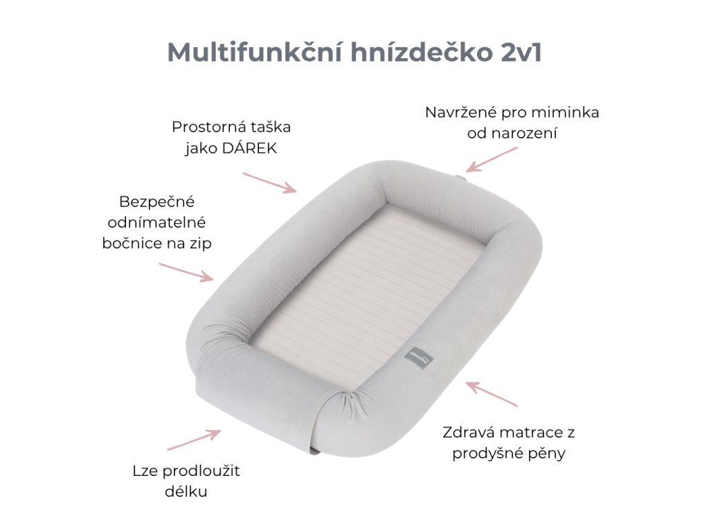 Bezpečnost a pohodlí vašeho dítěte jsou pro nás prioritou. Proto jsme vytvořili dětské hnízdečko 2v1, které je promyšlené do posledího detailu.