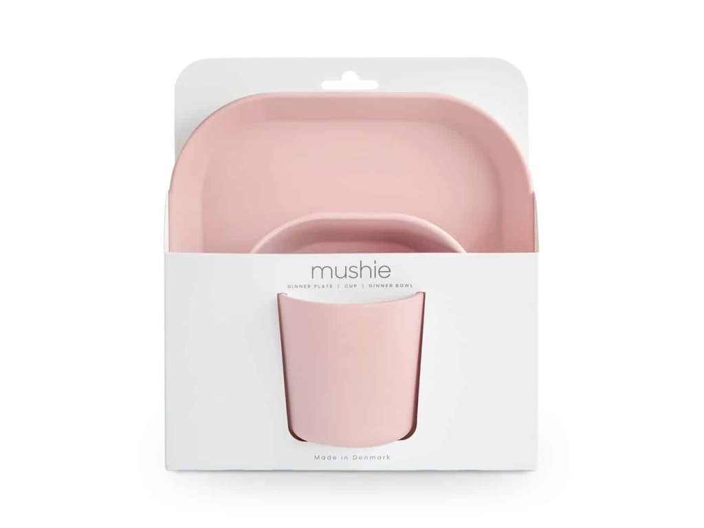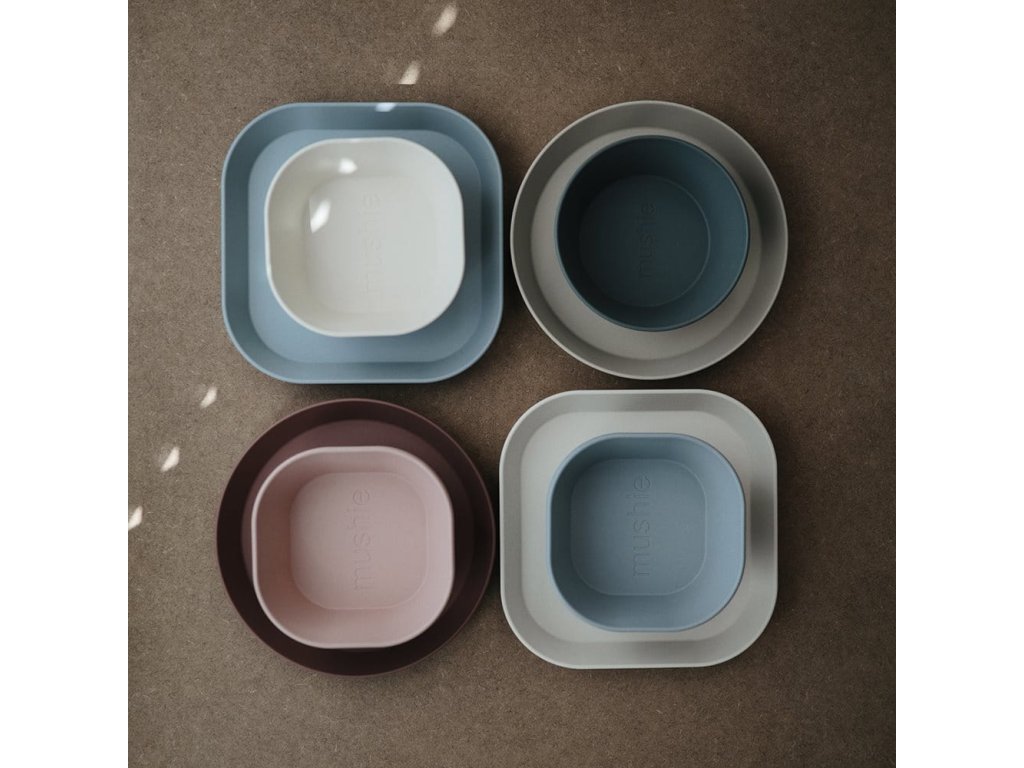 - 1× štvorcová miska Mushie – Blush