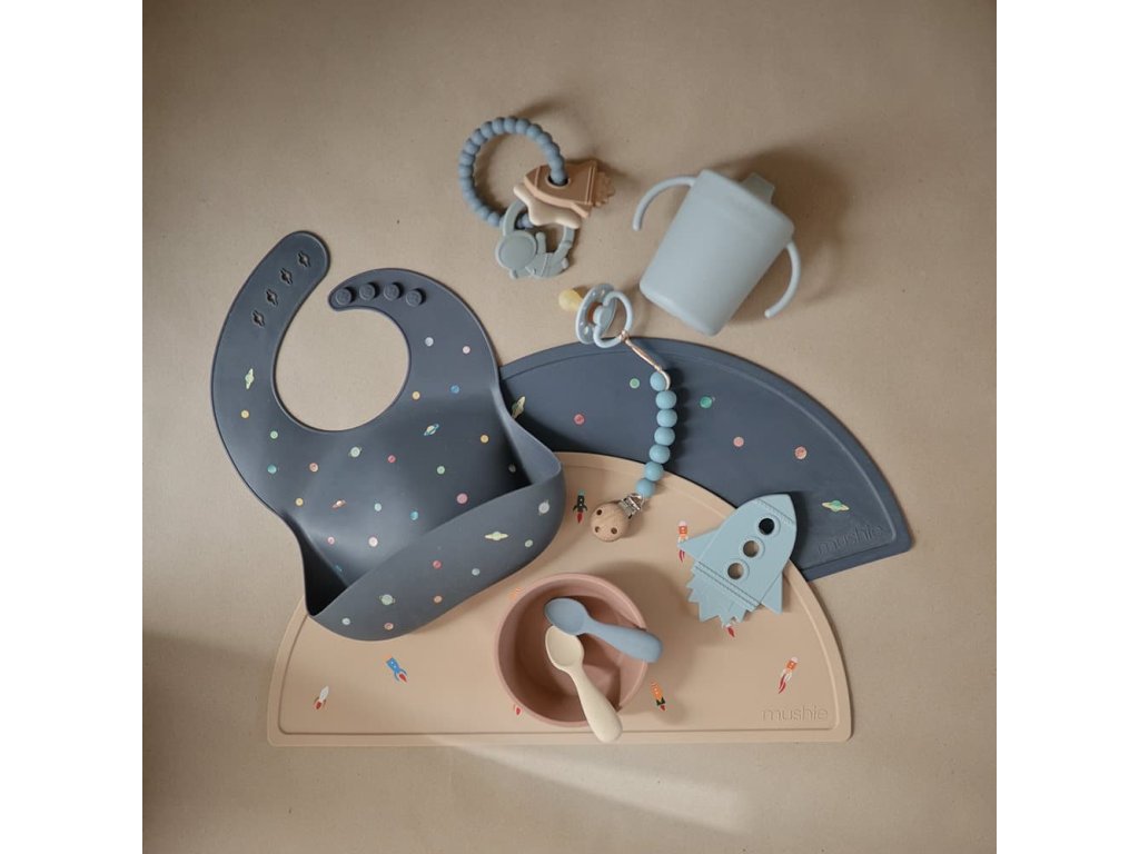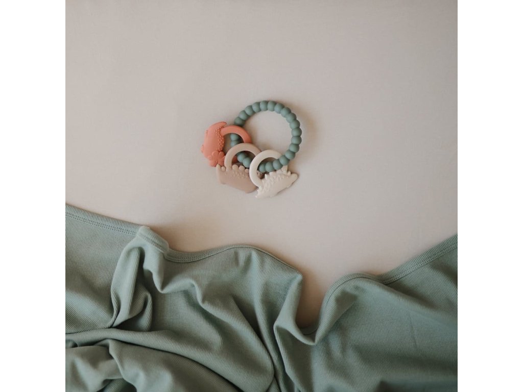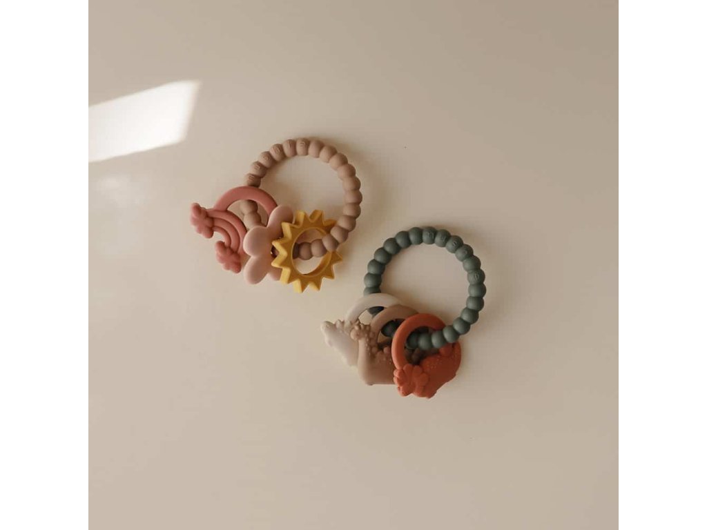 Krúžok na prerezávanie zúbkov s tromi malými dinosaurami, ktorý je navrhnutý tak, aby upokojil boľavé ďasná a poskytol úľavu pre najmenších a pokoj pre rodičov. Krúžok na prerezávanie zúbkov má rôzne tvary a textúry, ktoré stimulujú zmysly detí, kým si zaboria ďasná do mäkkého 100% potravinárskeho silikónového materiálu.   Hryzátka sú v hravých dizajnoch pre každého a dodajú vášmu domovu štýlový nádych.   Mushie hryzátko: