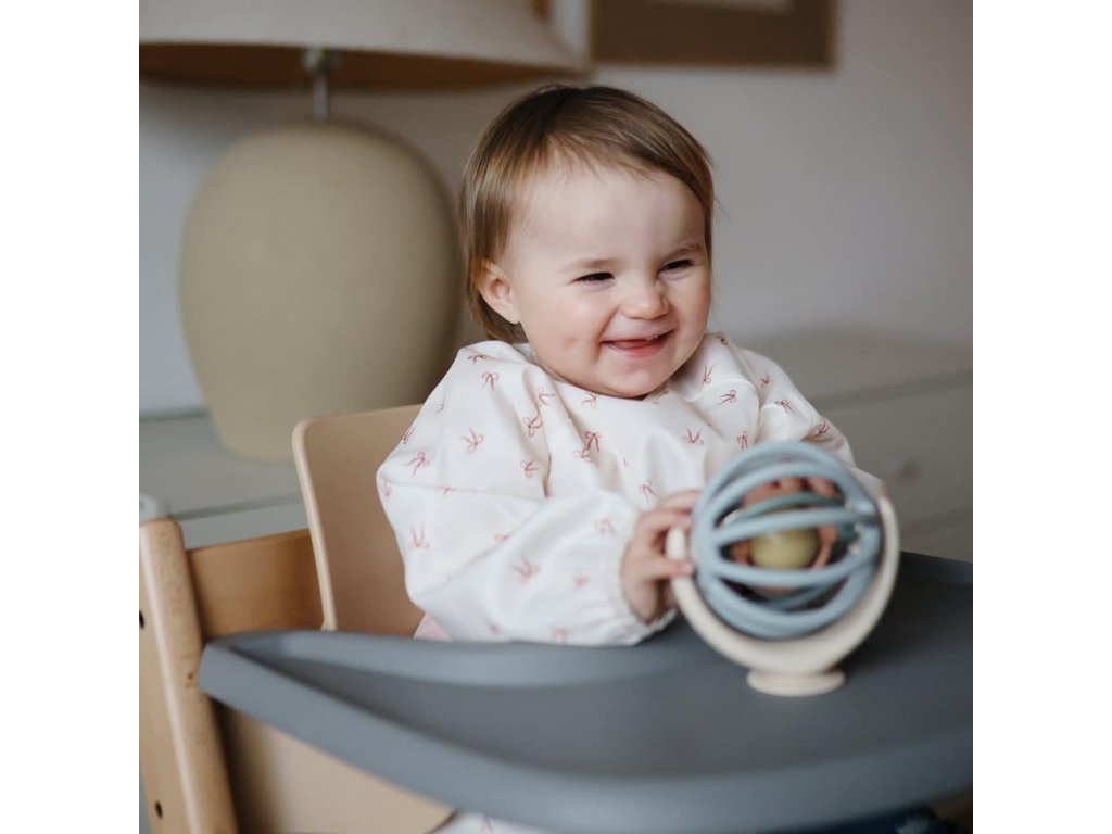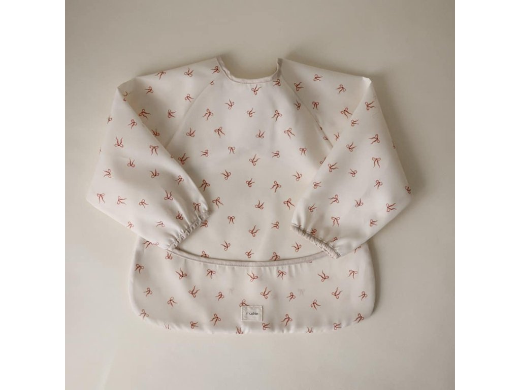 Podbradník s dlhým rukávom od značky Mushie pre bezproblémové jedenie!