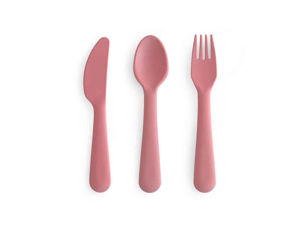Táto sada z odolného polypropylénového plastu obsahuje vidličku, lyžicu a nožík v jemnom odtieni Dusty Rose a v čistom minimalistickom dizajne. Každý kus je ideálnej veľkosti pre deti – ľahko sa drží a poskytuje pohodlné stolovanie.