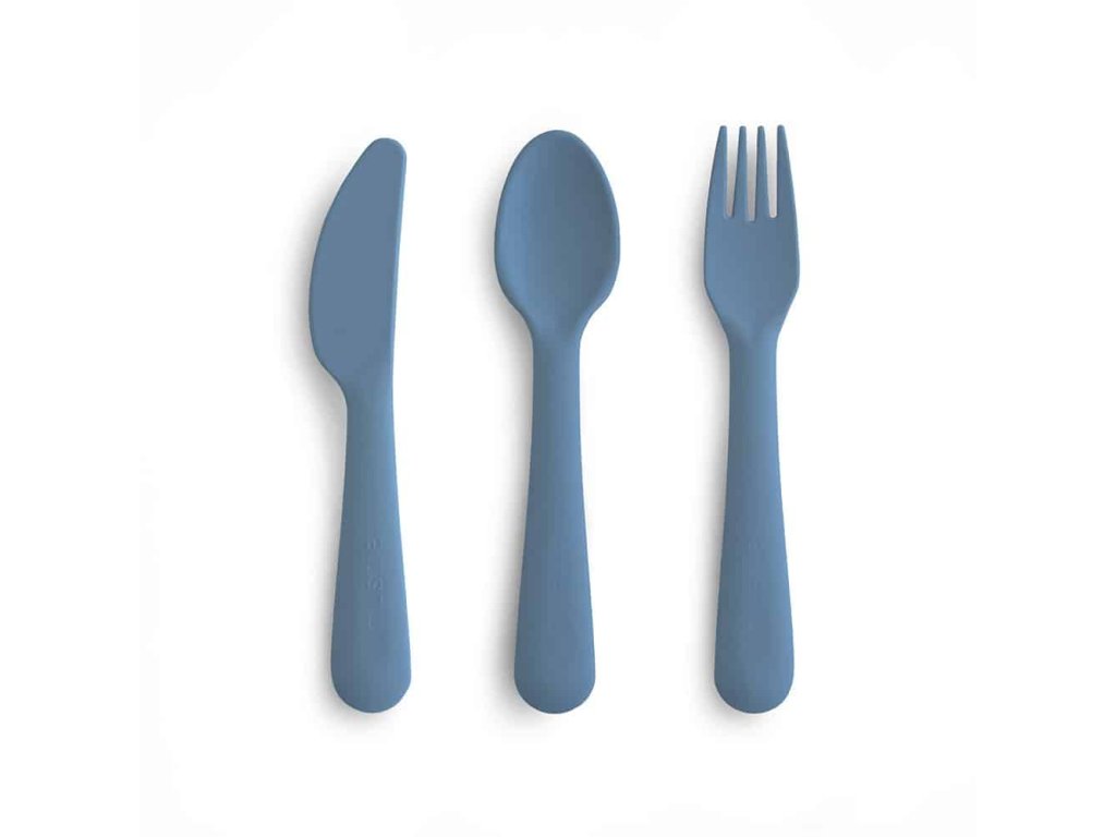 Táto sada z odolného polypropylénového plastu obsahuje vidličku, lyžicu a nožík v jemnom odtieni Twilight Blue a v čistom minimalistickom dizajne. Každý kus je ideálnej veľkosti pre deti – ľahko sa drží a poskytuje pohodlné stolovanie.