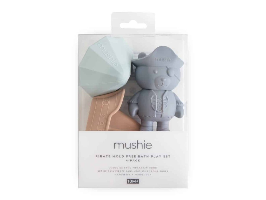 Urobte z kúpania veľké dobrodružstvo so sadou kúpeľových hračiek Mushie Pirate, ktorá obsahuje roztomilého pirátskeho medvedíka, truhlicu s pokladom, loď a drahokam.