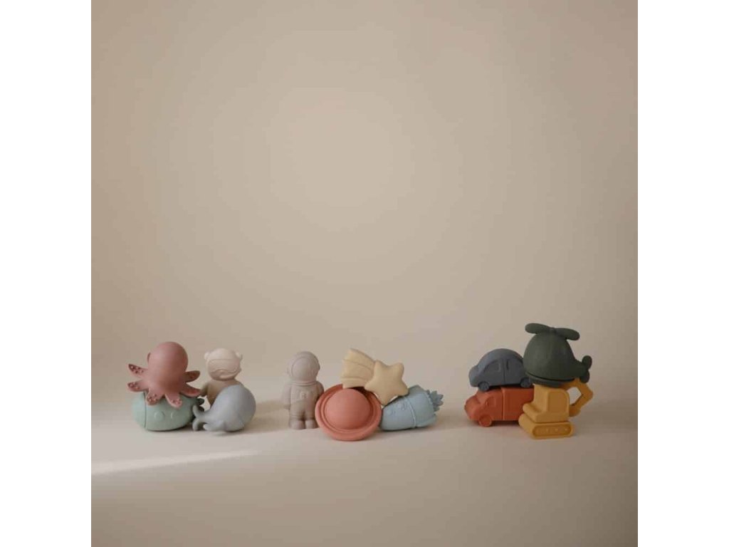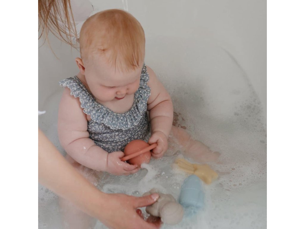4-balenie Space Bath Play Set je sada hračiek šetrných k vode, ktoré možno bezpečne používať vo vani. Súprava pozostáva zo 4 malých figúrok inšpirovaných vesmírom z potravinárskeho silikónu: astronaut, planéta, raketa a kométa, ktoré sú vyrobené tak, aby stimulovali zmysly detí a podporovali ich kognitívny vývoj.