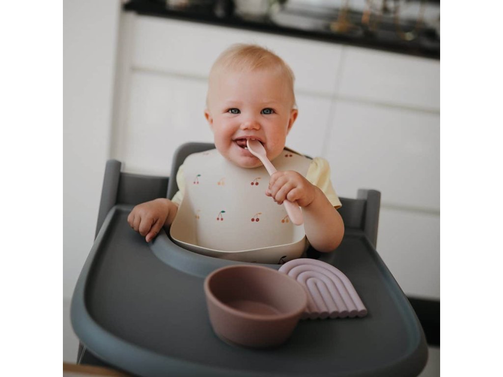Silikónový podbradník udrží vaše dieťa a jeho okolie čisté: hlboké vrecko zachytí jedlo a zabráni tomu, aby vytvorilo neporiadok na podlahe a na detskom oblečení. Zaoblené, vstavané zapínanie na krk zaisťuje pohodlné nosenie.
