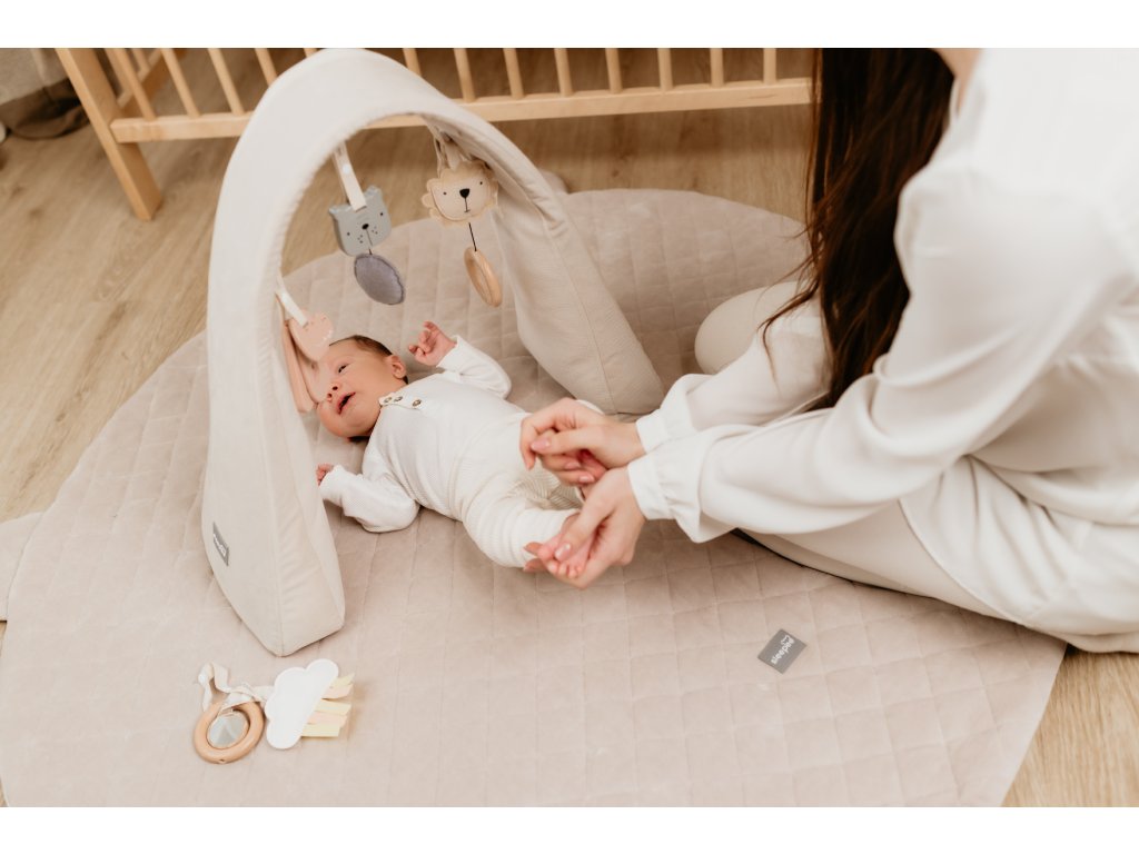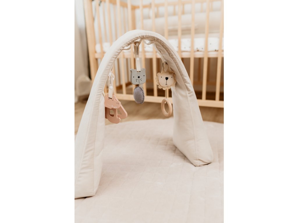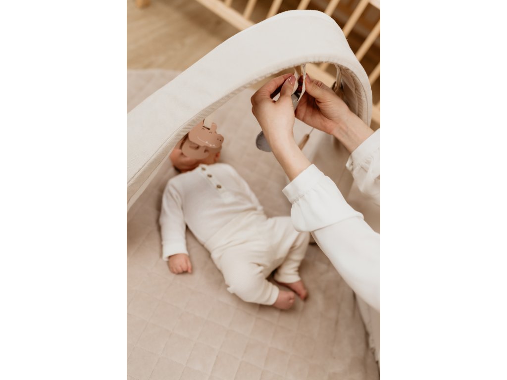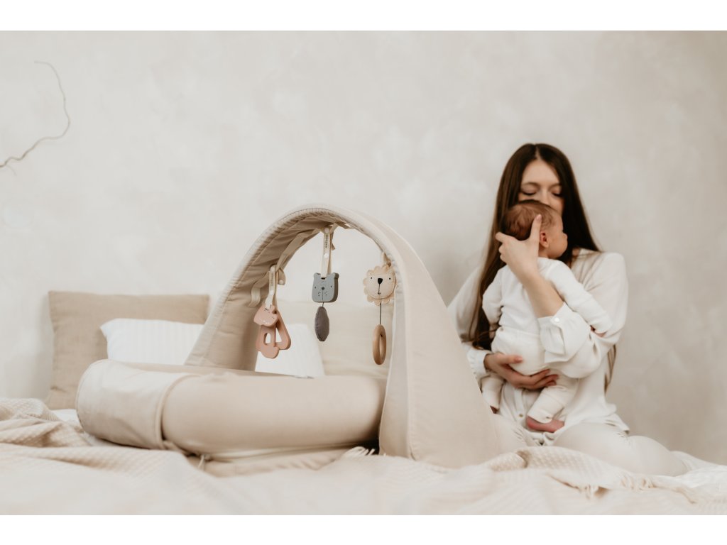 Hrazdička Sleepee je multifunkční a můžete ji využít nejen jako součást hnízdečka, ale také samostatně na hrací dece, posteli nebo gauči.