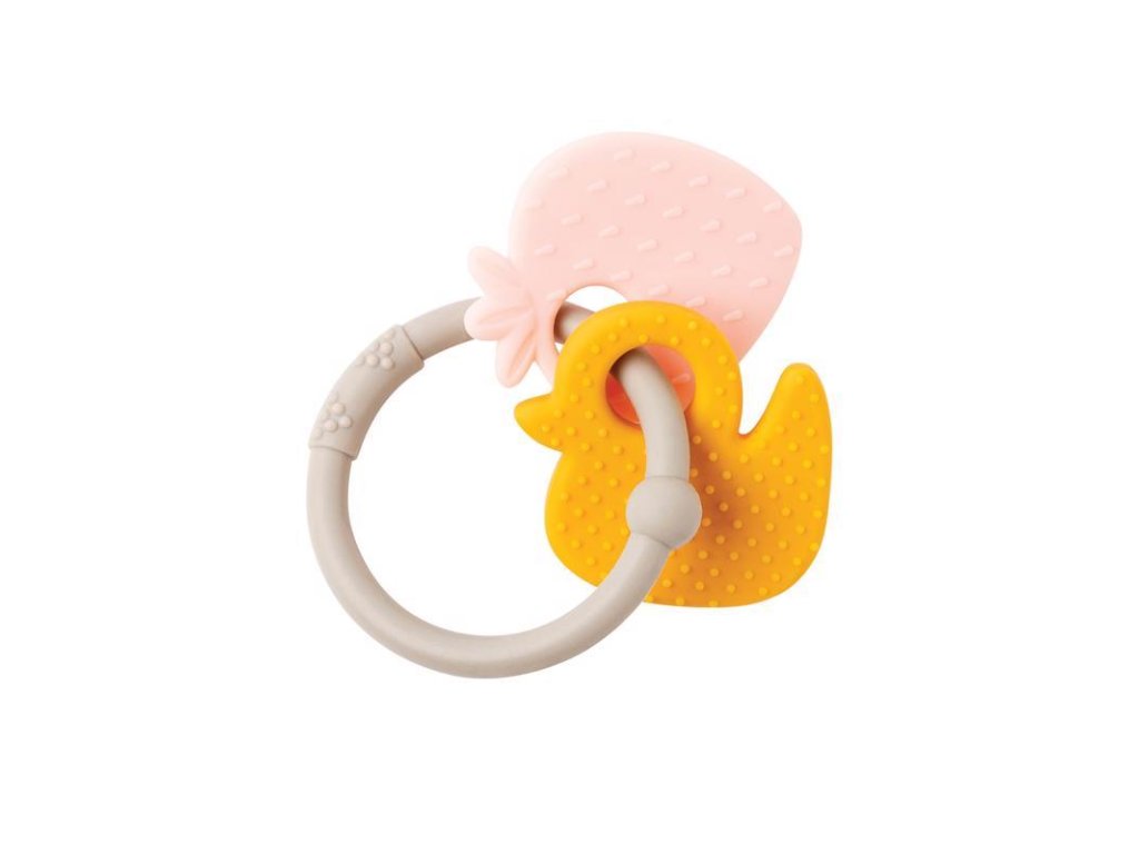 Silikónová hryzačka zložená z troch rôznych častí zmierni bolesť pri prerezávaní sa prvých zúbkov. Môže byť použitá aj ako jednoduchá hrkálka a tiež vďaka svojmu tvaru a dizajnu na rozvoj motorických zručností malých ručičiek. Krásny decentný dizajn.Vhodné od 4 mesiacov.