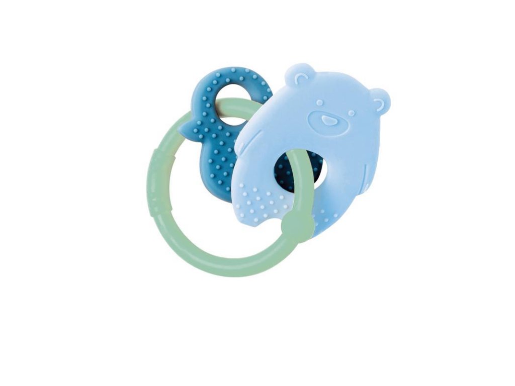 Silikónová hryzačka zložená z troch rôznych častí zmierni bolesť pri prerezávaní sa prvých zúbkov. Môže byť použitá aj ako jednoduchá hrkálka a tiež vďaka svojmu tvaru a dizajnu na rozvoj motorických zručností malých ručičiek. Krásny decentný dizajn.Vhodné od 4 mesiacov.