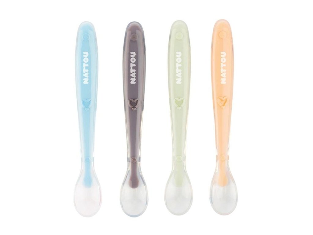 Set 4 lyžičiek od Nattou z mäkkého a ohybného silikónu, ktoré zabezpečujú jednoduchšie stravovanie pre vaše dieťa. Lyžičky sú vďaka mäkkosti a flexibilite šetrné k ďasnám.
