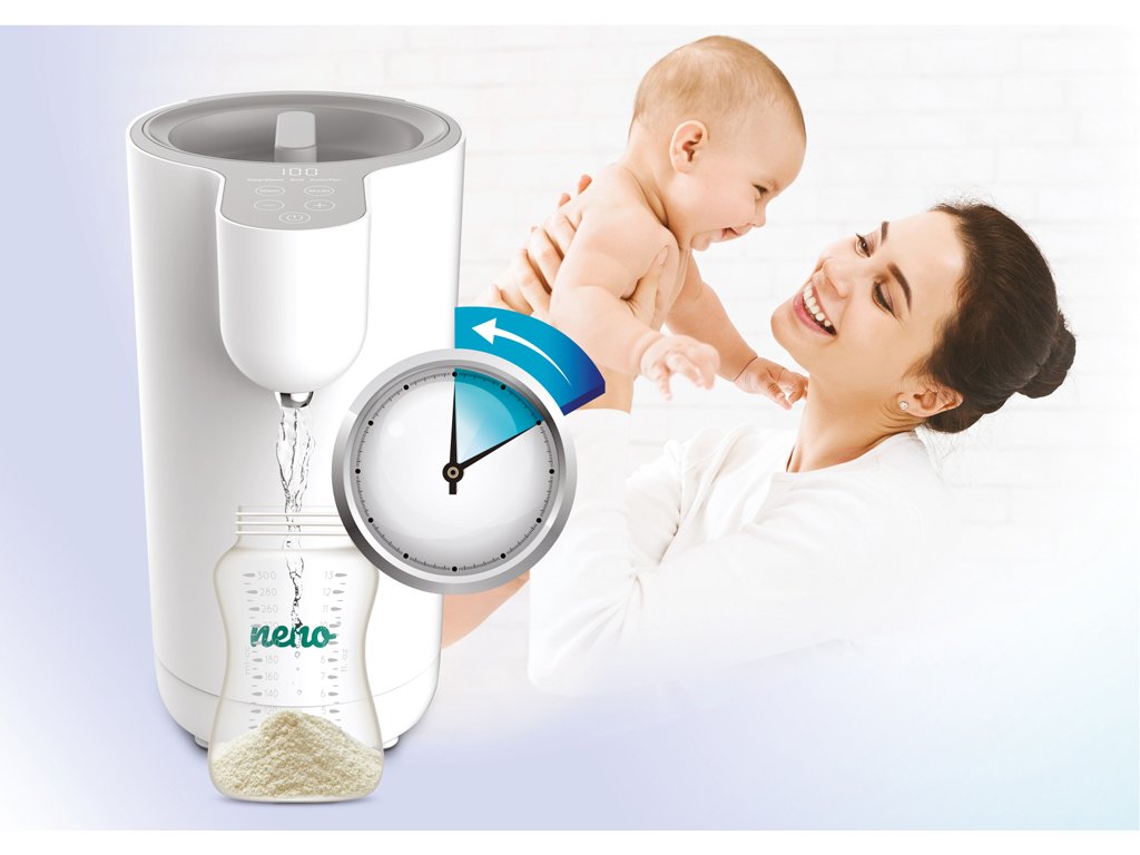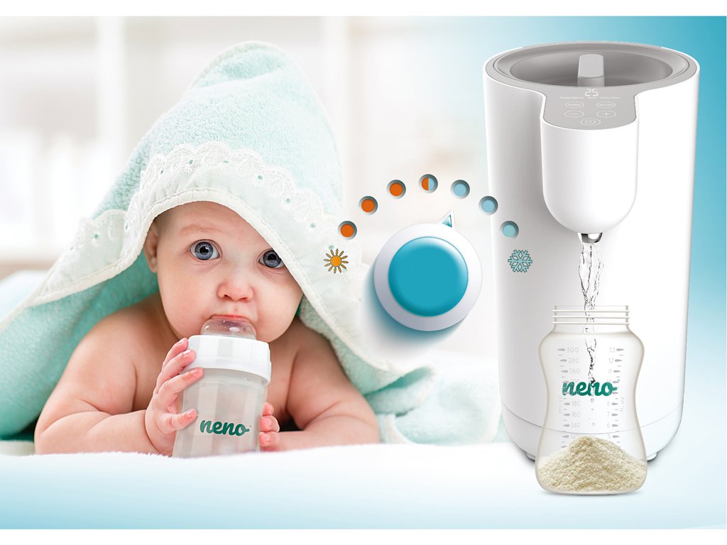 - Neno Aqua uvarí, zohreje a ochladzuje vodu v priebehu niekoľkých minút. Rýchla obsluha zariadenia vám umožní ušetriť čas a rýchlo pripraviť dojčenskú výživu pre vaše dieťa.