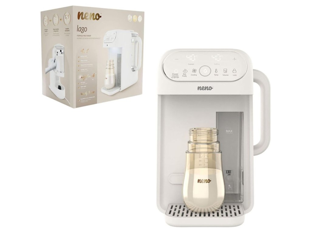 Neno Lago je automatický prístroj na prípravu dojčenskej výživy, ktorý šetrí čas a zjednodušuje kŕmenie - najmä počas nočných hodín. Zabezpečuje správnu teplotu vody, presné dávkovanie a maximálne pohodlie pri každom použití.