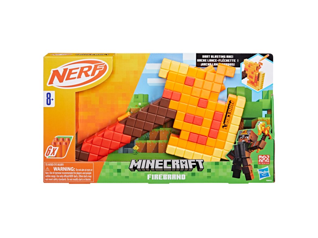Jedinečný blaster Firebrand inšpirovaný sekerou z hry Minecraft. Zaručuje vysokú dávku adrenalínu a patrí medzi zbrane pre veľkých i malých bojovníkov. Zbraň je presná, dá sa ľahko nabiť a strieľa na veľkú vzdialenosť. Môže pojať až 3 šípky súčasne. Na nabitie stačí stiahnuť úchop a potom stlačiť tlačidlo pre výstrel. Okraje blástra sú obalené penovým materiálom. Vyrobené z kvalitného plastu s nízkou hmotnosťou. Jej používanie vylepšuje motorické a pohybové zručnosti. Okrem zbrane balenia tvoria šípky. V cene je obsiahnutých celkom 6 nábojov. Dĺžka zbrane je 40 cm. Vhodný darček pre všetkých nadšencov hry Minecraft. Väčšiu bezpečnosť je možné dosiahnuť nasadením okuliarov. Rozmer balenia: 22,9 x 40,6 x 4,4 cm. Vhodné od 8 rokov.