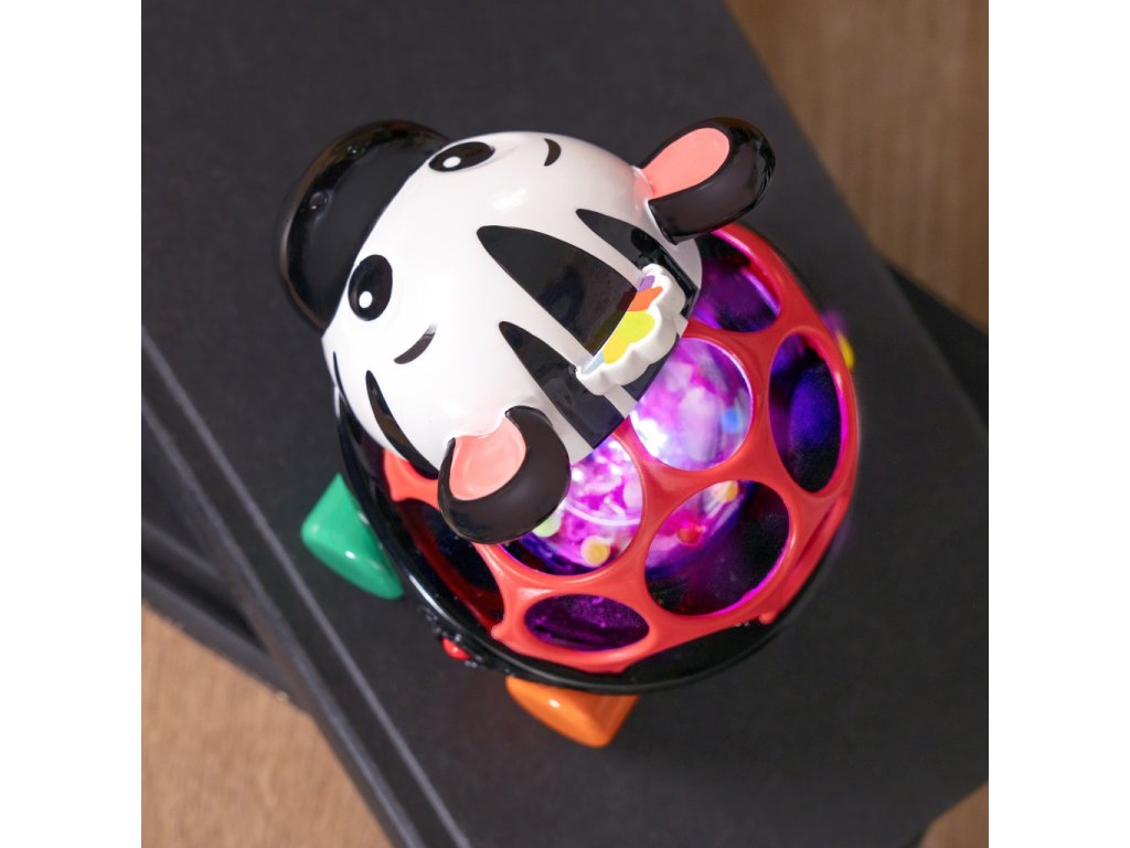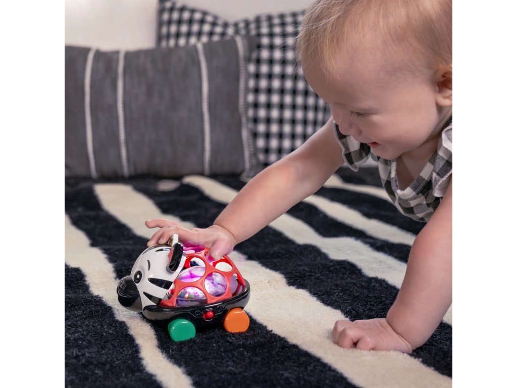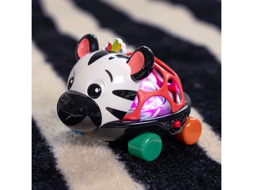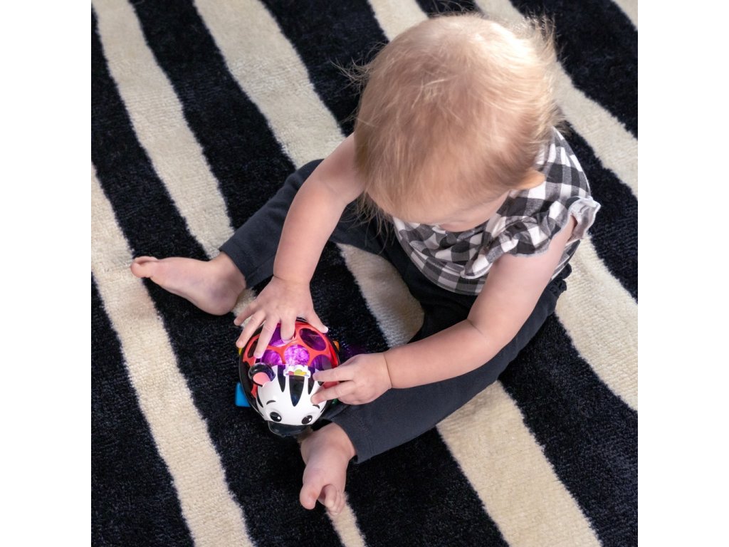 Pomôžte dieťaťu objavovať s hračkou a hrkálkou Baby Einstein Curious Car Zen Oball. Toto žiarivé autíčko má svetlá a flexibilný rám, ktorý dieťaťu umožní ľahko uchopiť a kotúľať túto farebnú hračku. Vďaka videám a knihám môže zebra Zen od Baby Einstein pomôcť bábätku objavovať nové pohľady, zvuky alebo sa zapájať do hier. Keď dieťa tlačí auto, rozsvietia sa farebné svetlá kupoly, aby odmenili dieťa a podporili pochopenie príčin a následkov! Ohybný rám pomáha podporovať rozvoj jemnej motoriky, keď deti vo veku od 3 mesiacov hračku uchopia a zatrasú ňou. Táto ľahká hračka je ideálna pri hre na brušku, hru v sede alebo objavovanie na cestách a je skvelým darčekom pre malého chlapca alebo dievča. Utierajte vlhkou handričkou.