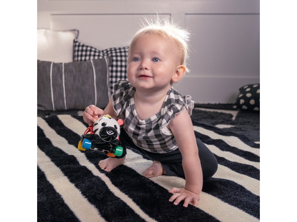 - Obsahuje zebru Zen z kníh a predstavení Baby Einstein. Ideálna pri hre na brušku, v sede alebo na cestách. Vďaka kompaktným rozmerom sa hračka zmestí do väčšiny tašiek na plienky.