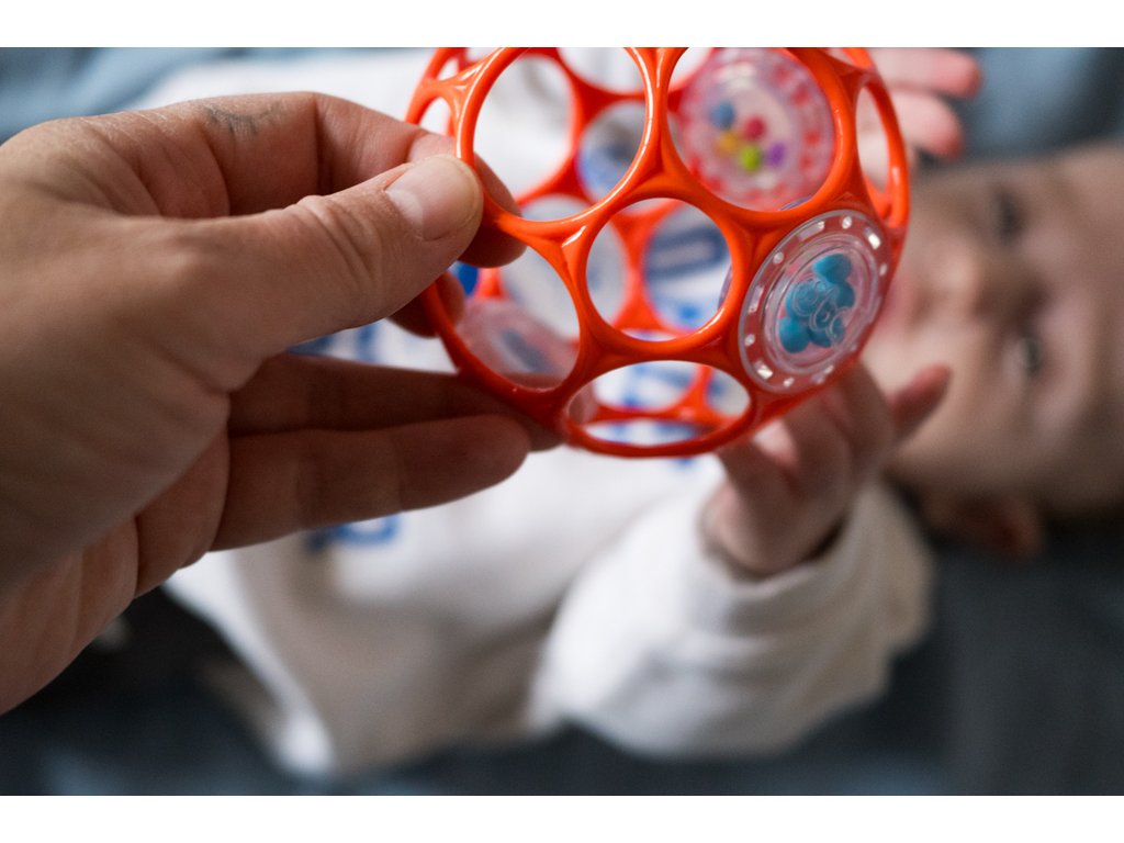 S hrkálkou od Oball vaše dieťatko zažije veľa zábavy pri získavaní prvých zručností. Táto ocenená loptičková hrkálka sa stane obľúbenou hračkou dieťatka. Jednoduchý dizajn od Oball zabezpečuje to najjednoduchšie uchopenie aj pre tie najmenšie rúčky, z čoho bude mať vaše dieťatko radosť. Loptička má 29 dierok, ktoré práve umožnia dieťatku jednoduché uchopenie. Je vyrobená z ľahkého materiálu, preto nebude ťažká pre drobné rúčky. V loptičke sa nachádzajú tri hrkálky vyplnené farebnými korálikmi, ktoré vydávajú zábavné zvuky už pri najmenšom zatrasení. Tieto zvuky neustále povzbudzujú dieťatko, aby loptičku držalo v rukách a triaslo s ňou.