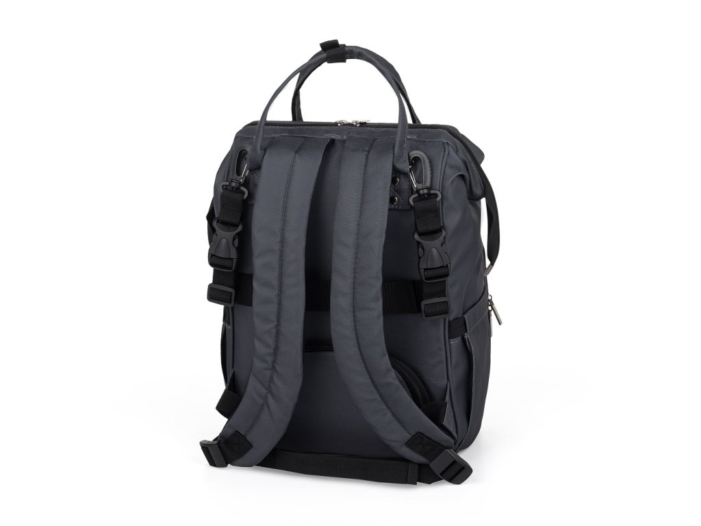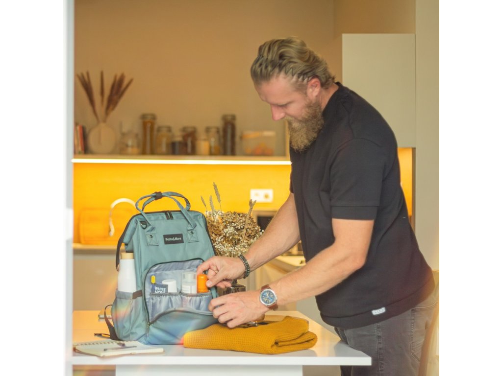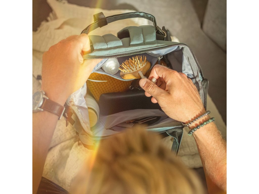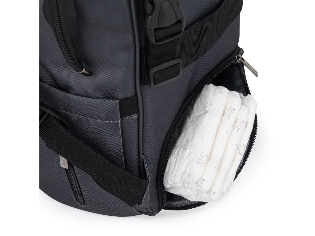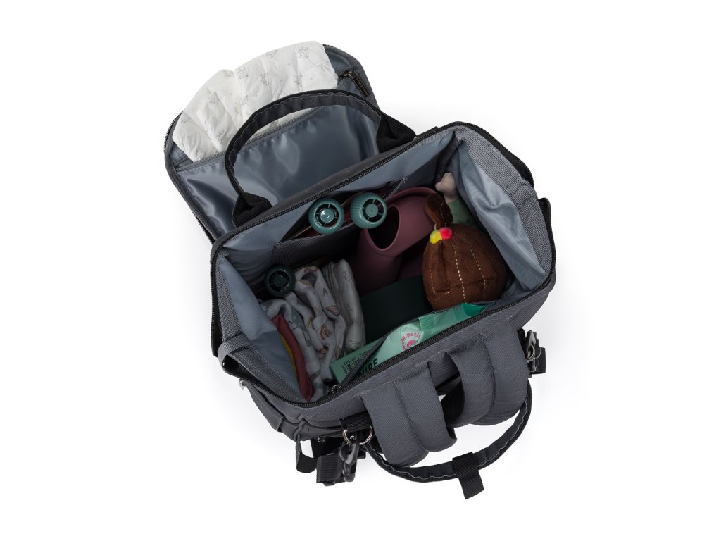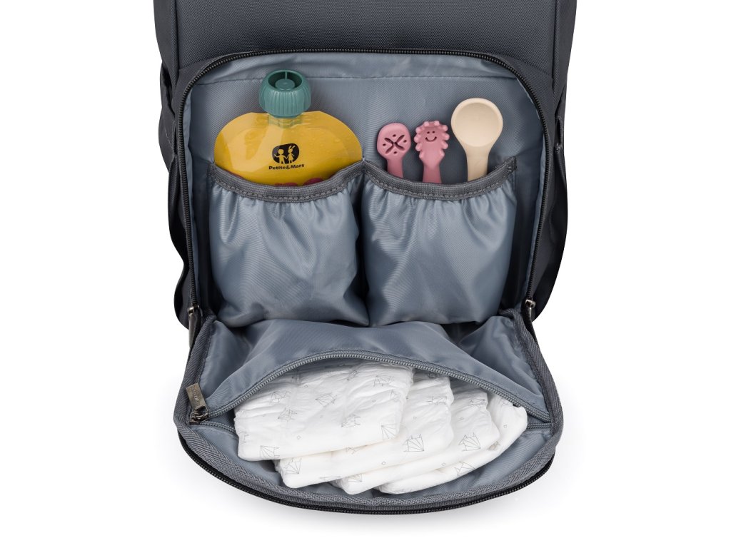 Tento pohodlný a organizačne premyslený batoh je vyrobený z kvalitných materiálov odolných voči vlhkosti. Má bočné popruhy na pripevnenie ku kočíku a hlavná priehradka sa zapína na dvojcestný zips. Veľké množstvo vreciek vrátane funkčných vreciek a jednoduchý prístup k obsahu vďaka bočnému otváraniu vám výrazne uľahčí balenie na výlet alebo prechádzku.