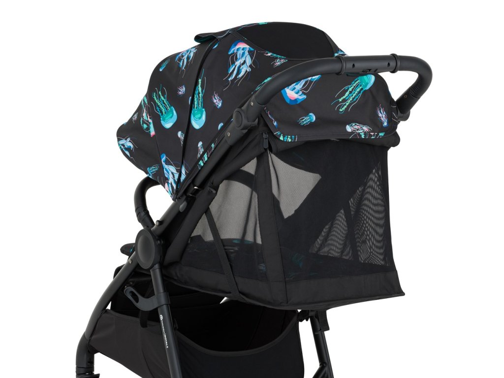 Dieťatko ocení pohodlie a dostatočný priestor a vďaka vylepšenej sieťovanej opierke chrbta a extra dlhej strieške si vychutná komfortný spánok aj počas horúceho leta. Maminke pri usádzaní dieťatka pomôže otočné madlo a nová magnetická pracka.