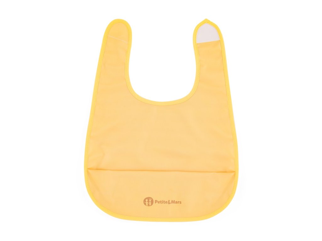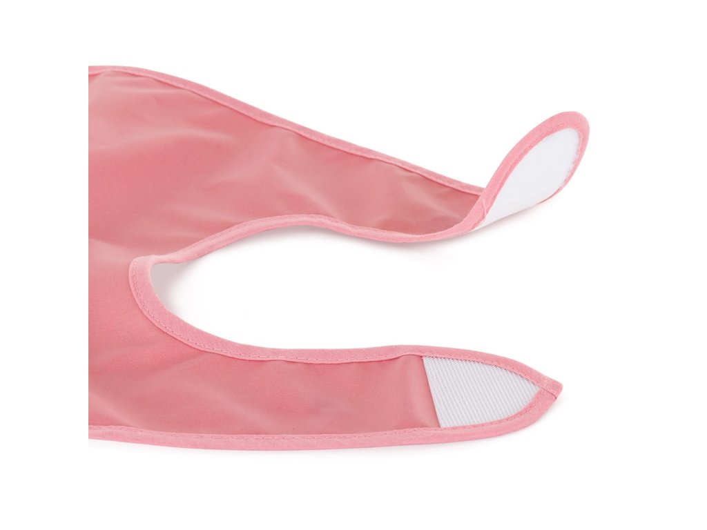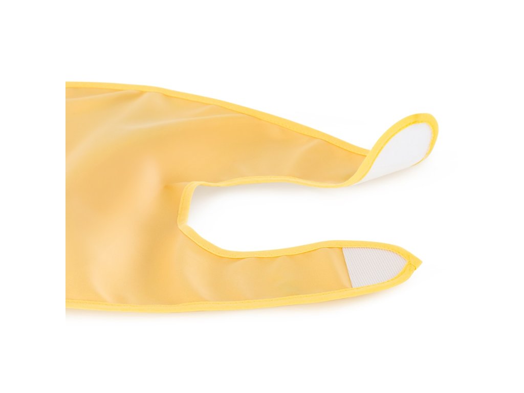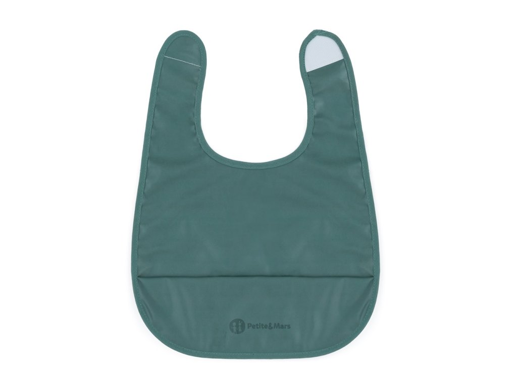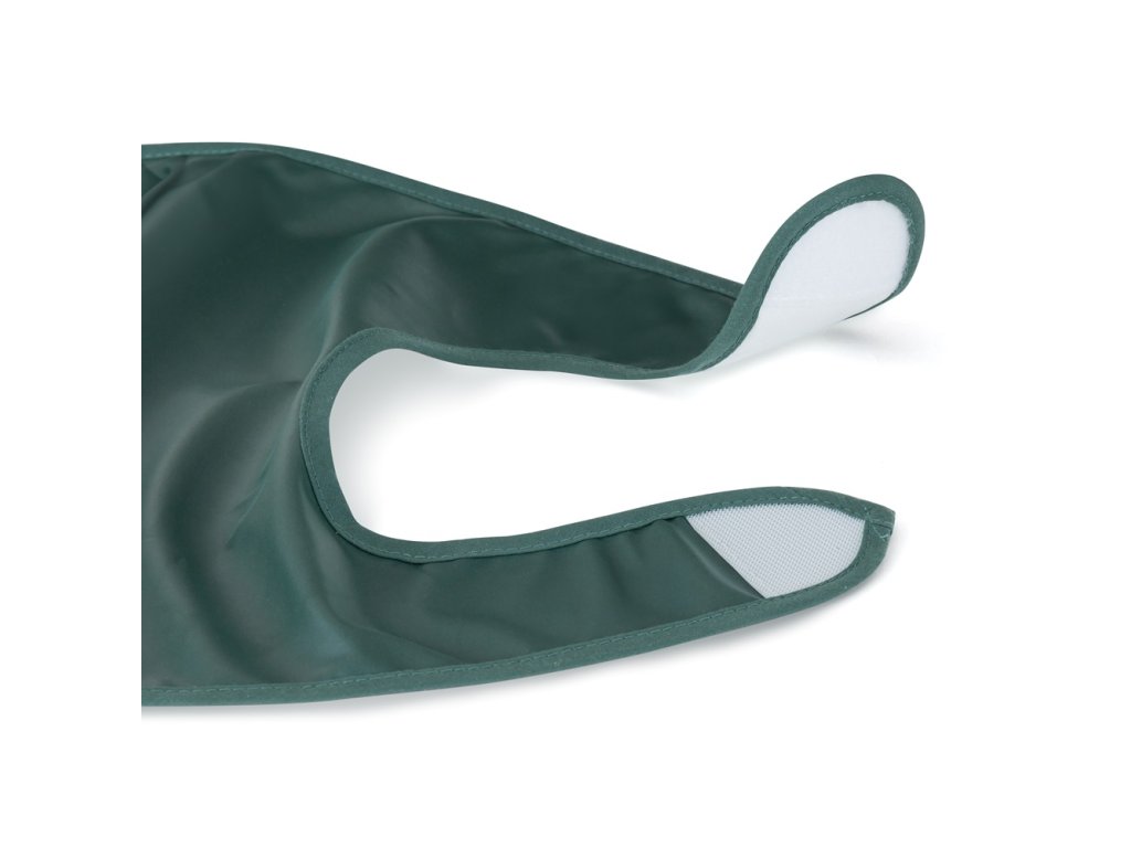 Podbradník je vybavený vreckom na omrvinky, ktoré pomáha udržať poriadok a komfort počas jedla. Vďaka nastaviteľnému zapínaniu na jemný suchý zips sa ľahko prispôsobí krku dieťaťa. Po každom použití ho stačí utrieť vlhkou handričkou a je opäť čistý.