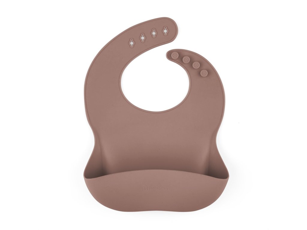 Podbradník je vyrobený z potravinárskeho silikónu bez obsahu BPA. Je určený pre malé deti od 6 mesiacov, ktorým sa zavádzajú prvé príkrmy, a pre tie, ktoré sa už úspešne učia samostatne jesť. Má nastaviteľné zapínanie, ktoré umožňuje prispôsobiť ho veľkosti krku dieťaťa. To znamená, že podbradník rastie spolu s dieťatkom. Vďaka ergonomickému tvaru a mäkkému materiálu sa podbradník pohodlne nosí a neobmedzuje pohyb dieťaťa pri jedení. Dá sa tiež zrolovať, a preto nezaberá veľa miesta v taške, keď idete na prechádzku alebo na výlet.