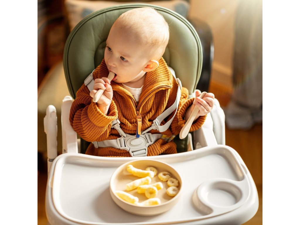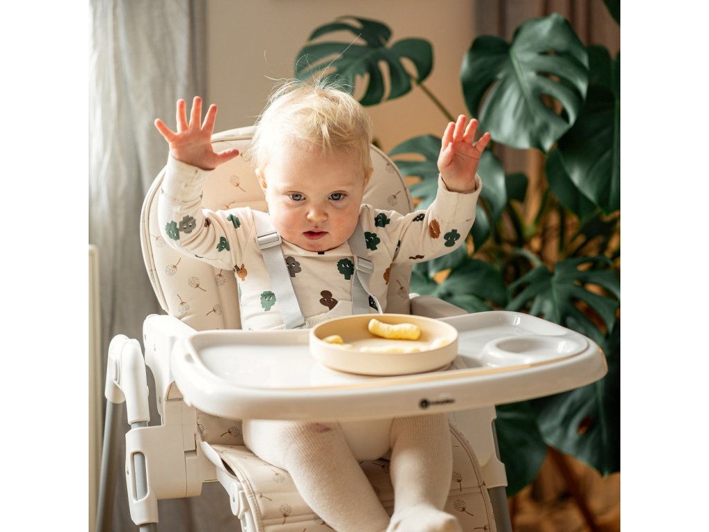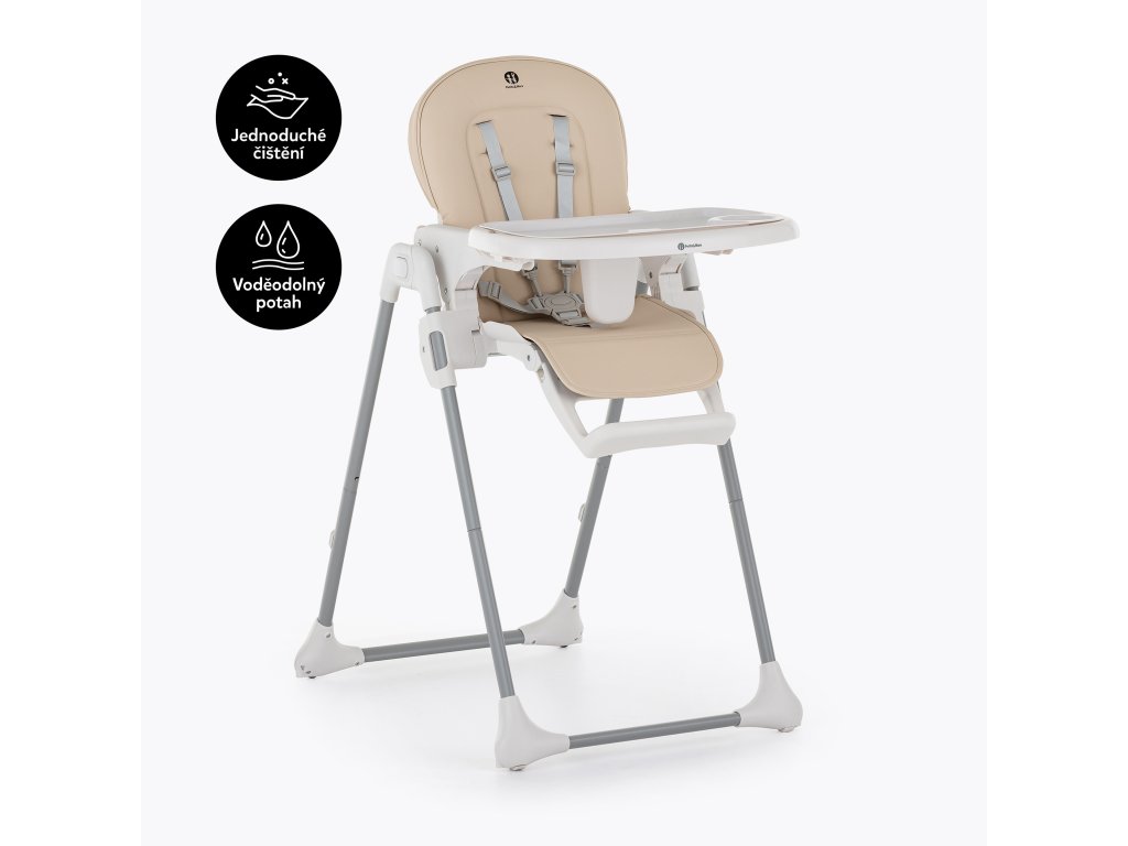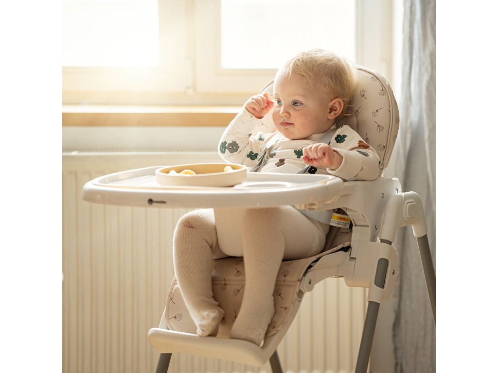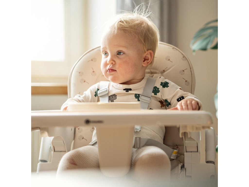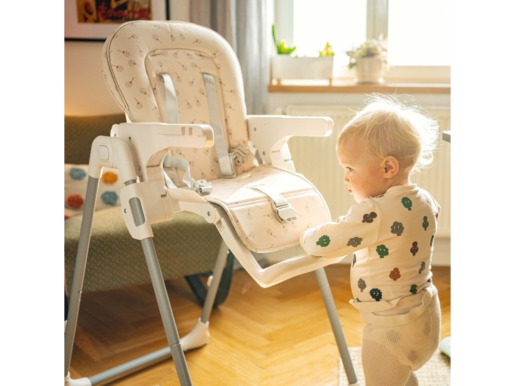 Starostlivosť o životné prostredie, ktorú sme pri tvorbe tejto stoličky zohľadnili, nezatienila najdôležitejšie aspekty výrobku - bol totiž navrhnutý tak, aby čo najbezpečnejšie zlepšil každodenný život dieťatka aj rodičov. Stolička má všetky funkcie, ktoré uľahčujú každodenné kŕmenie: Je možné ju ľahko zložiť a vyčistiť, má 5-bodové bezpečnostné pásy, nastaviteľnú opierku chrbta, nastaviteľnú opierku nôh, nastaviteľnú výšku, dve polohy pre podnos s hornou časťou, ktorú možno umývať v umývačke riadu. Stabilná konštrukcia stoličky zaistí bezpečnosť vášho dieťaťa bez ohľadu na to, aké je aktívne alebo pohyblivé. Vysokokvalitné vyhotovenie, premyslená konštrukcia, moderný a originálny dizajn a kompaktné skladanie sú nadčasové vlastnosti, ktoré zabezpečia pohodlie pre vaše dieťa od okamihu, keď sa naučí sedieť.