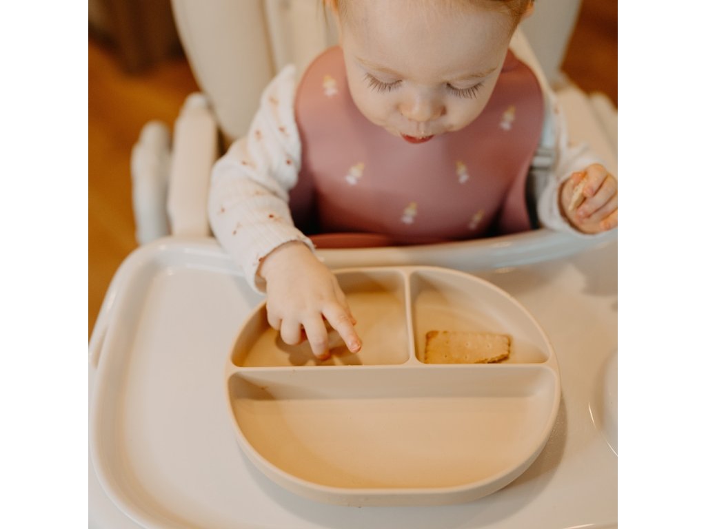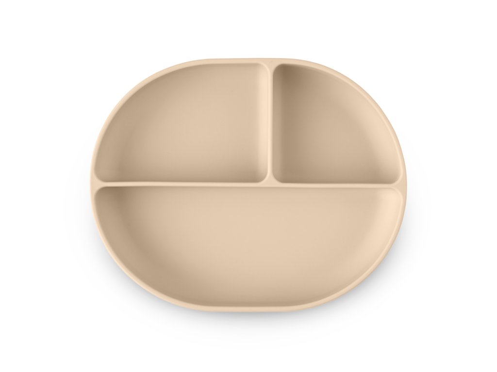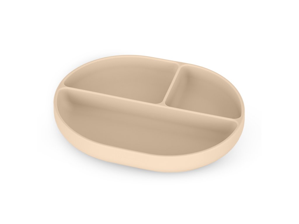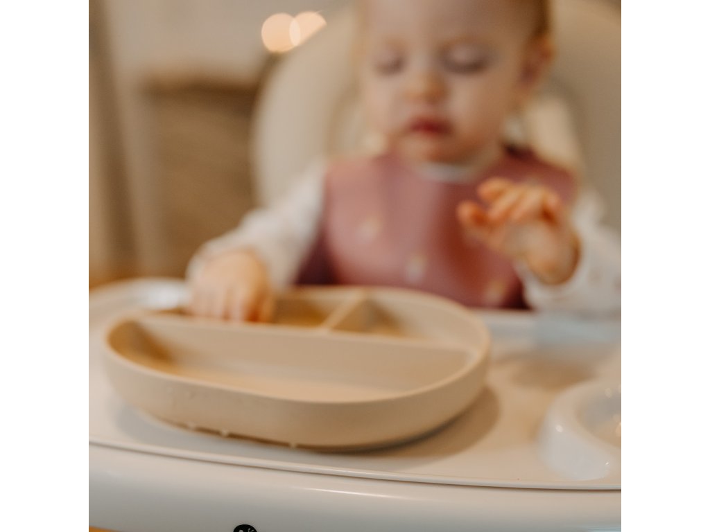 Praktický tanier je celý vyrobený z potravinárskeho silikónu bez obsahu BPA. Vďaka tomu ho možno bezpečne používať na všetky potraviny, teplé aj studené, a jedlo v ňom možno bez obáv ohrievať v mikrovlnnej rúre alebo uchovávať v chladničke. Vďaka odolnému a mäkkému silikónu sa nemusíte obávať, že sa tanier rozbije, odštiepi alebo zdeformuje - môžete ho nepoškodený používať dlhý čas. Je vhodný pre deti od 6 mesiacov, ktoré sa zoznamujú s rozšírenou stravou, a pre tie, ktoré sa už úspešne učia jesť samy. Vďaka oválnemu tvaru je tanier mimoriadne priestranný, čo umožňuje servírovať viac chutných výrobkov v jednom tanieri.