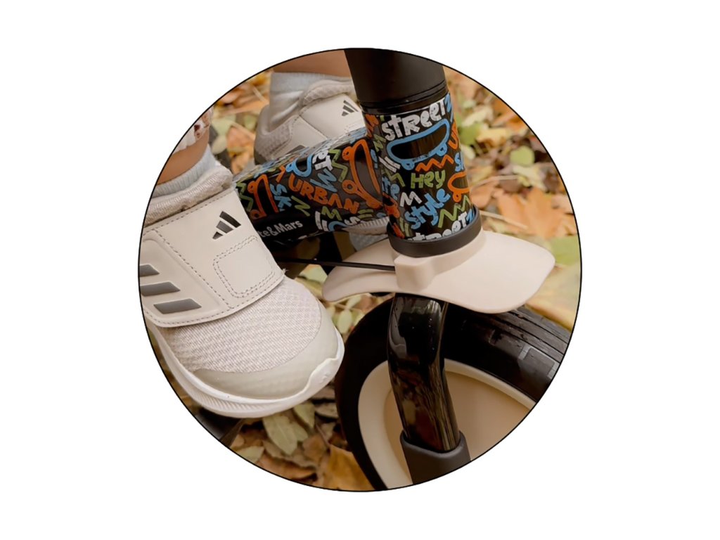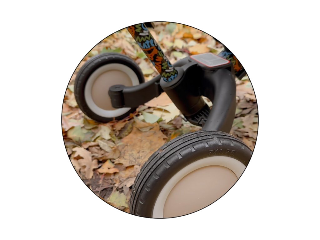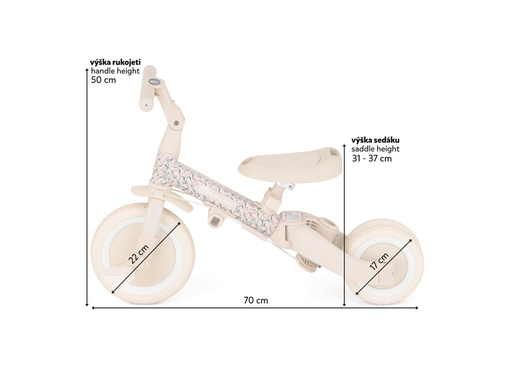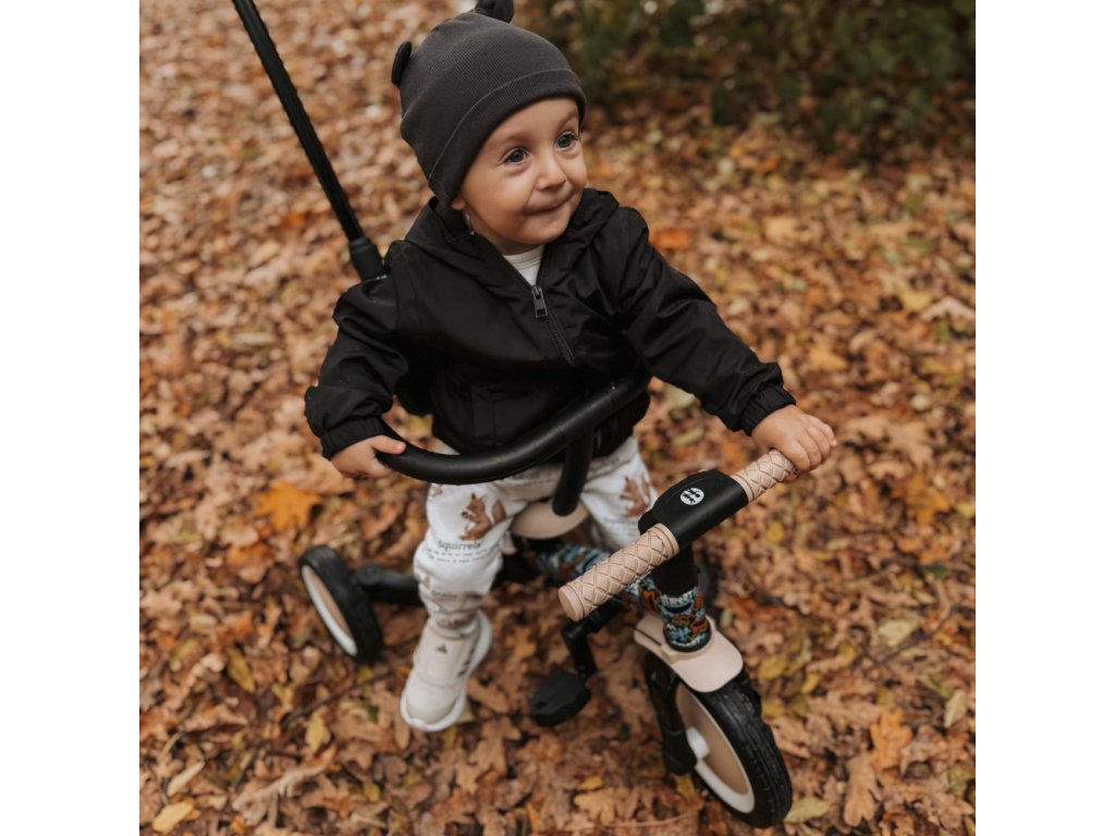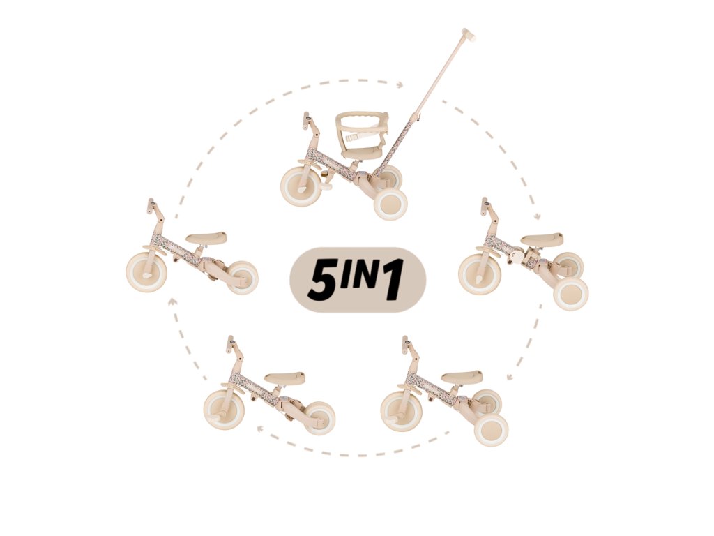 Multifunkčná trojkolka určená pre deti od 1,5 do 5 rokov alebo do 25 kilogramov je nielen dopravný prostriedok na presun a učenie sa rovnováhy, ale aj spoločník pre rastúce dieťa počas mnohých vývojových fáz. Vďaka premyslenej transformácii sa prispôsobí aktuálnym motorickým schopnostiam dieťatka – od trojkolky s asistenciou rodiča až po plnohodnotný bicykel s pedálmi.