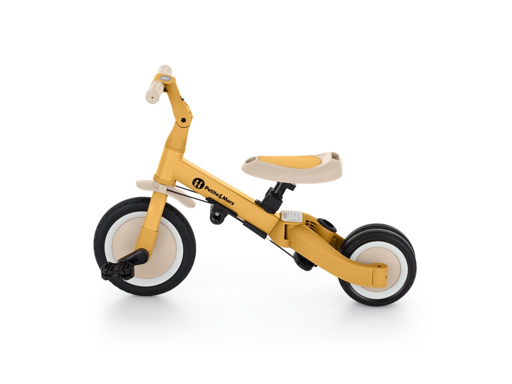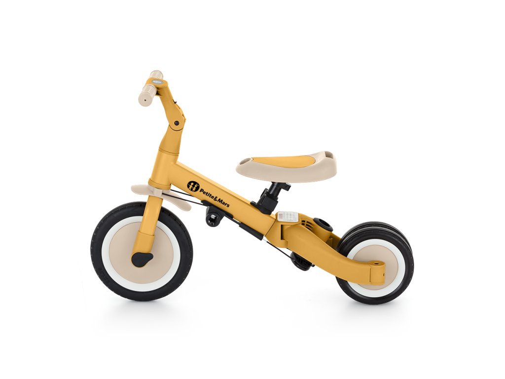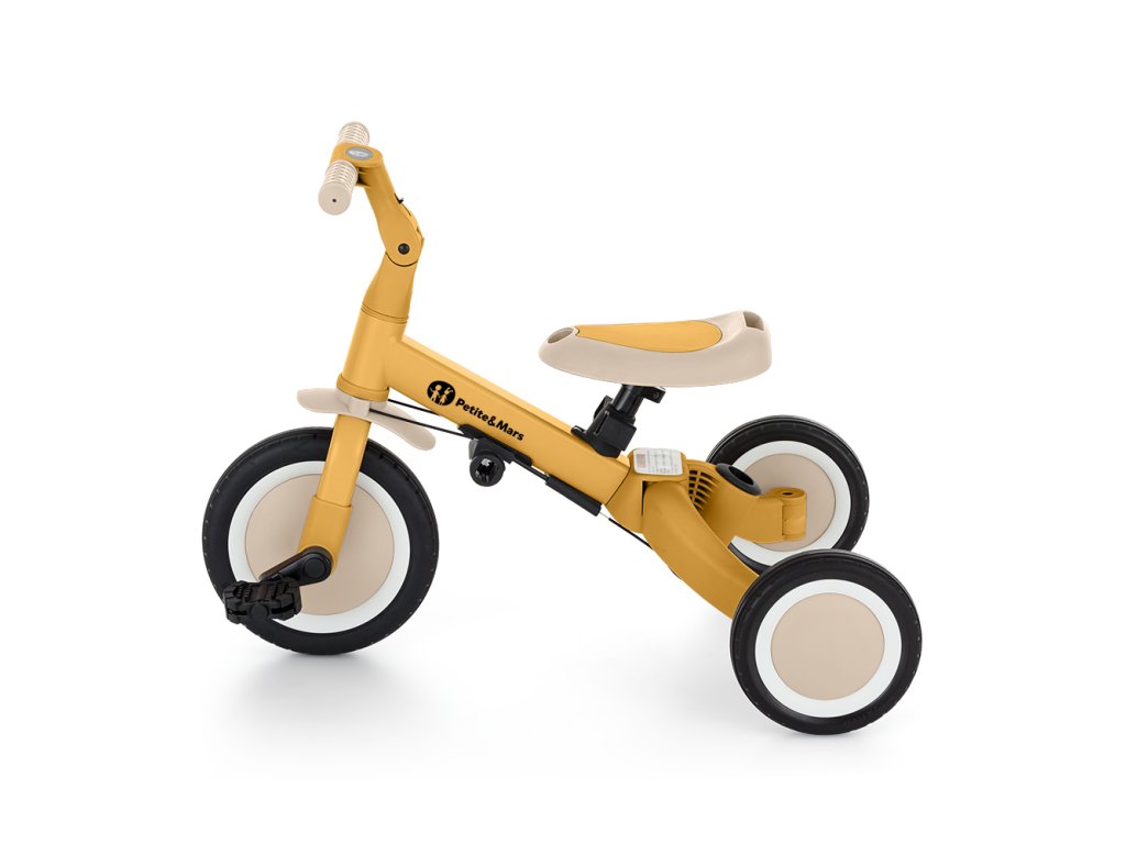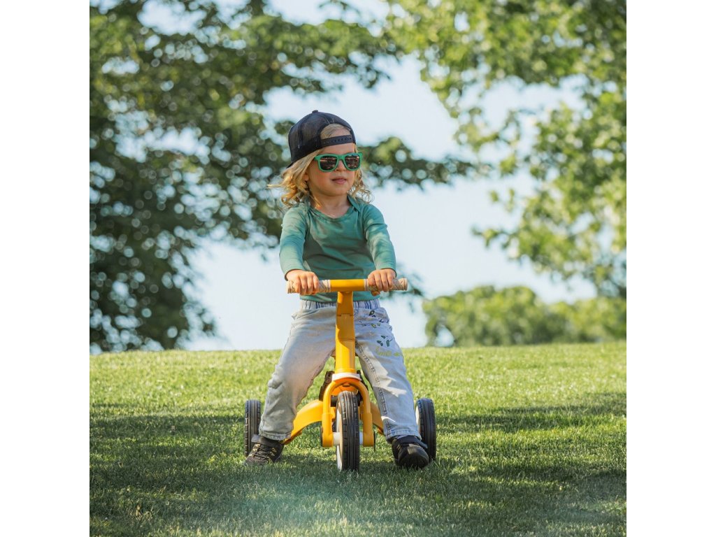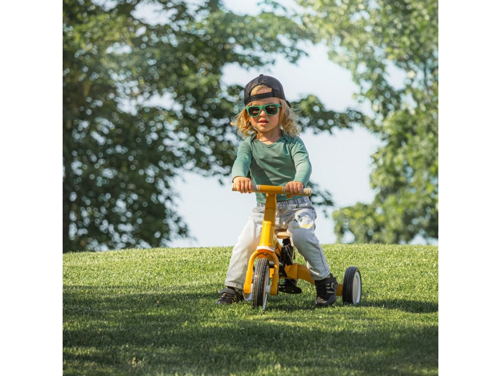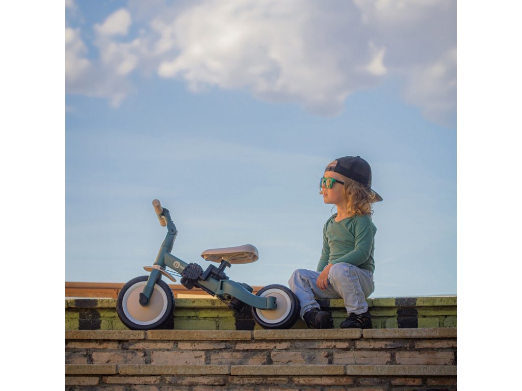 Multifunkčná trojkolka určená pre deti od 1,5 do 5 rokov alebo do 25 kilogramov. Je to nielen dopravný prostriedok na presun a učenie sa rovnováhy, ale aj spoločník pre rastúce dieťa počas mnohých vývojových fáz. Premyslené menenie sa bicykla sa prispôsobuje potrebám dieřatka podľa toho, ako sa vyvíjajú jeho motorické schopnosti. Spočiatku je to trojkolka s možnosťou asistencie rodiča, zatiaľ čo konečná verzia je štandardný bicykel s pedálmi, bez akýchkoľvek ďalších podporných prvkov. Vďaka takýmto zmenám môžete pomôcť svojmu dieťaťu naučiť sa jazdiť na dvoch kolesách.
