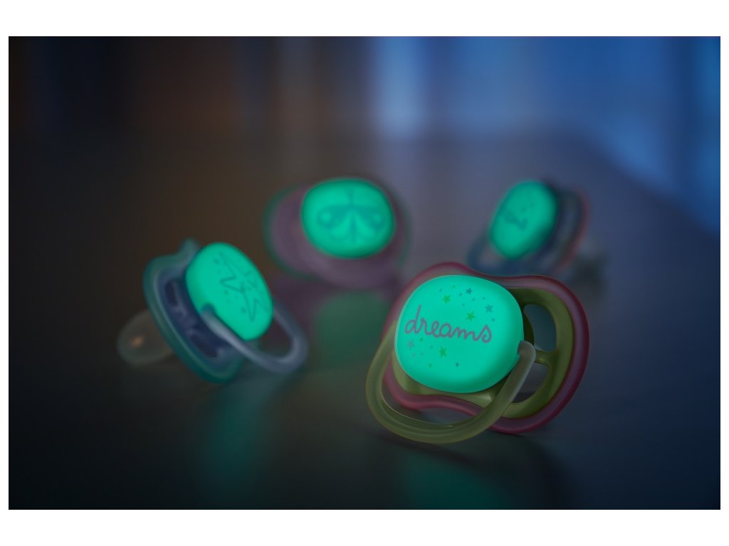 Žiariaci prvok vám v tme umožní rýchlo nájsť cumlík vášho dieťatka bez toho, aby ste museli rozsvietiť svetlo.