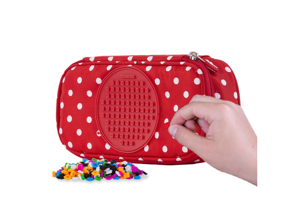 PIXIE CREW študentský peračník červená látka s bielymi bodkami