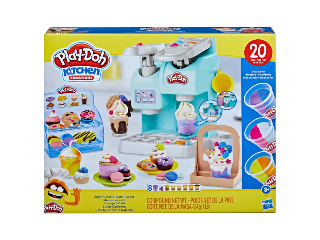 Tento super set prenesie vaše deti do sveta fantastickej kaviarne a pekárne, kde zažijú veľké dobrodružstvá! Len sa pozrite na množstvo kelímkov a farieb na prípravu Play-Doh frappé, horúcich nápojov a mnohých ďalších vecí. Súčasťou je tiež prepravka, ktorá vám umožní si všetko zobrať so sebou aj na cesty. V sete nájdete množstvo krásnych vykrajovačov a tvorítok na zdobenie Play-Doh šišiek, sušienok, muffinov a všetkých týchto báječných dobrôt. Pridajte ´´len ako´´ šľahačku a ďalšie detaily, prebuďte v sebe kreativitu a fantáziu pri výrobe rôznych lahôdok, ktoré si potom môžete vystaviť! Skvelé ako darček! Vek. 3+
