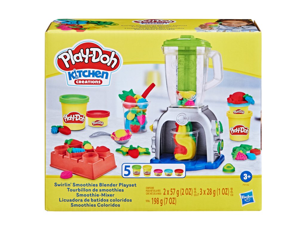 Pustite sa do nápaditej hry s hracou súpravou Play-Doh mixér na smoothie! Táto detská hracia sada s jedlom na hranie umožňuje chlapcom a dievčatám od 3 rokov tvoriť ovocie a zeleninu z hmoty Play-Doh, vkladať ich do mixéra a stlačením z nich vytvárať super farebné smoothie na hranie! A keď dôjde na zdobenie, jediným obmedzením je detská fantázia! Ružová šľahačka Play-Doh? Prečo nie? Žlté jahody na hranie? No jasne! Modrá brokolica? Len si ju vytvorte! Sady Play-Doh, ako je hracia sada s mixérom na smoothie, sú skvelé kreatívne hračky pre dievčatá a chlapcov. Zahŕňa hernú sadu mixéra s piestom, ďalšie príslušenstvo k smoothie a 5 kelímkov modelovacej hmoty. Vhodné pre deti od 3 rokov.