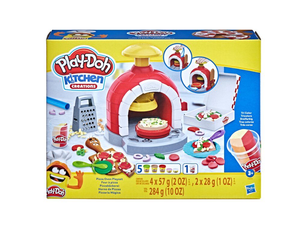 Pizza Play-Doh v novom poňatí. Táto kuchynská zábava má fakt grády. Chcete dokonale chrumkavé cesto? Jednoduchý nový mechanizmus vám pizzu vyklopí priamo z rúry. Milovníci syra zase ocenia trojitú syrovú modelínu a strúhadlo na syr. Samozrejmosťou je viac ako 20 výrobných prísad a kartónová krabica. Sada obsahuje špeciálnu pec na pizzu, 8 ks nástrojov a prísušenstvo na úpravu pizze, 6 kelímkov plastelíny rôznych farieb. Modelovacia hmota nefarbí, nešpiní a nevysychá. Je mäkká a ľahko sa tvaruje. U detí rozvíja kreatívu a jemnú motoriku. Vek: 3+