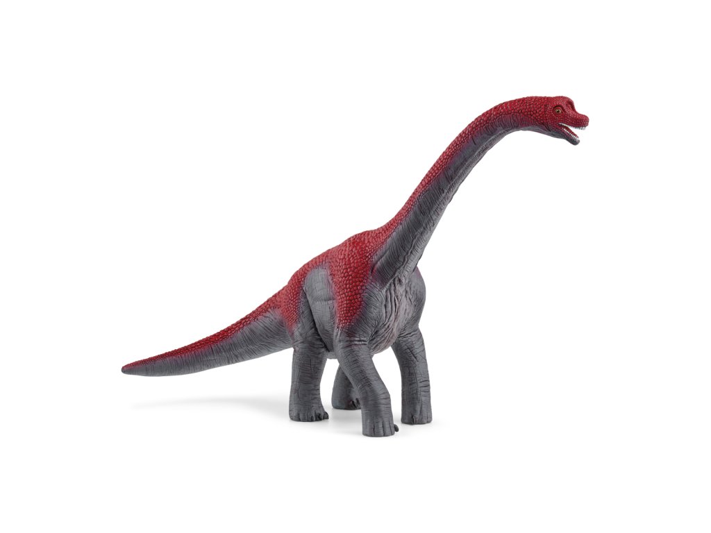 Obrovského Brachiosaura je vidieť už zďaleka: Jeho dlhý krk, vysoký ako dom, vyčnieva nad korunami stromov. Čo tam vlastne robí? Ostrými zubami trhá z konárov listy a vetvičky. Pri jedle ho len málokedy niečo ruší, a to nielen vďaka jeho veľkosti. Prehistorický obor je od hlavy až po špičku chvosta pokrytý ohnivo červenou jašterou kožou. Brachiosaurus sa tak múdro bráni útočníkom. Ako vegetarián však obvykle nemá náladu na boj. Rozmery figúrky: 17,6 x 29 x 12 cm. Vek: 4+
