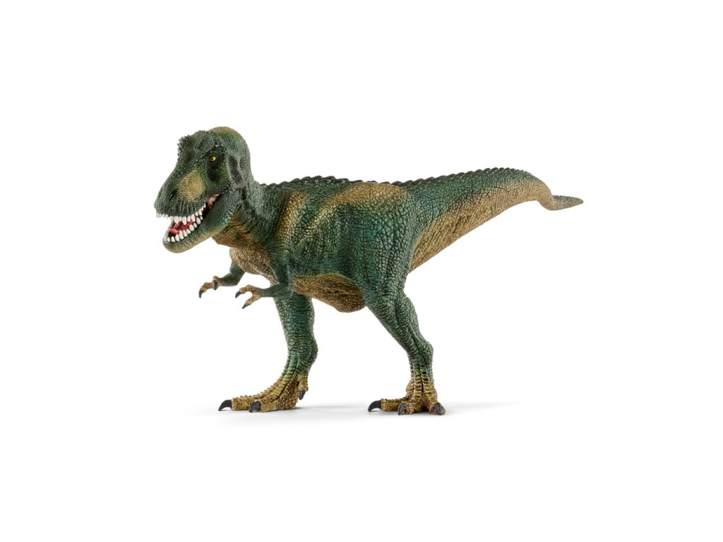 Tyranosaurus rex vyzeral veľmi hrozivo, mohol ale len ťažko používať svoje krátke predné končatiny vybavené len dvoma pazúry, pretože tie nedosahovali ani po jeho tlamu. So svojou výškou takmer sedem metrov a dĺžkou až trinásť metrov nebol tyranosaurus rex žiadnym dobrým lovcom, ale živiacich sa zdochlinami, ktorý sa živil tým, čo nechala ostatné zvieratá ležať. Mal viac ako päťdesiat zubov s dĺžkou až 15 centimetrov, ktoré však nepoužíval na žuvanie, ale k trhaniu, lebo svoju potravu prehĺtal vo veľkých kusoch. Pre zlepšenie vnímania hĺbky pri hľadaní potravy smerovali oči tyranosaura rexa dopredu, takže sa zorné polia obidvoch očí krížil. Pokiaľ tento ohromný dravec stratil jeden zo svojich dýkovitých zubov, narástol mu počas niekoľkých týždňov nový. Tyranosaurus rex má pohyblivú dolnú čeľusť. Viac informácií možno o dinosauroch zistiť v priloženej brožúre! Rozmer: 31,5 x 14,5 x 11,5 cm. Nevhodné pre deti do 3 rokov. Odporúčaný vek: 4-10