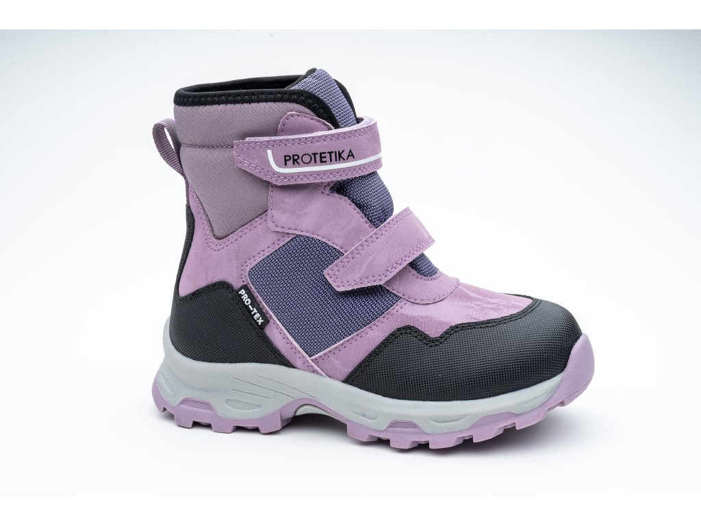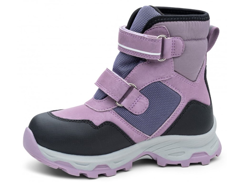 Nový model! Dievčenské vychádzkové zimné topánky sú vyrobené z hladkej kože v kombinácii s kvalitným textilným materiálom vo fialkovej a čiernej farbe. Topánky sú vyššieho strihu.