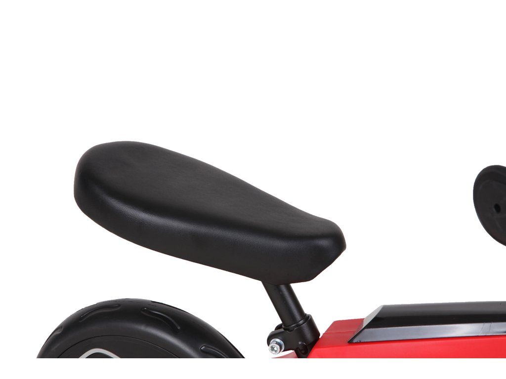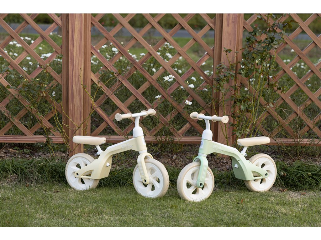 Výškovo nastaviteľný volant umožňuje prispôsobiť vozidlo výške dieťaťa, pričom obmedzovač riadenia zvyšuje bezpečnosť. Prúdnicový tvar znižuje odpor vzduchu, čo sa premieta do vyššej rýchlosti jazdy. Bicykel sa dá používať v interiéri aj exteriéri a je vhodný na prenášanie.