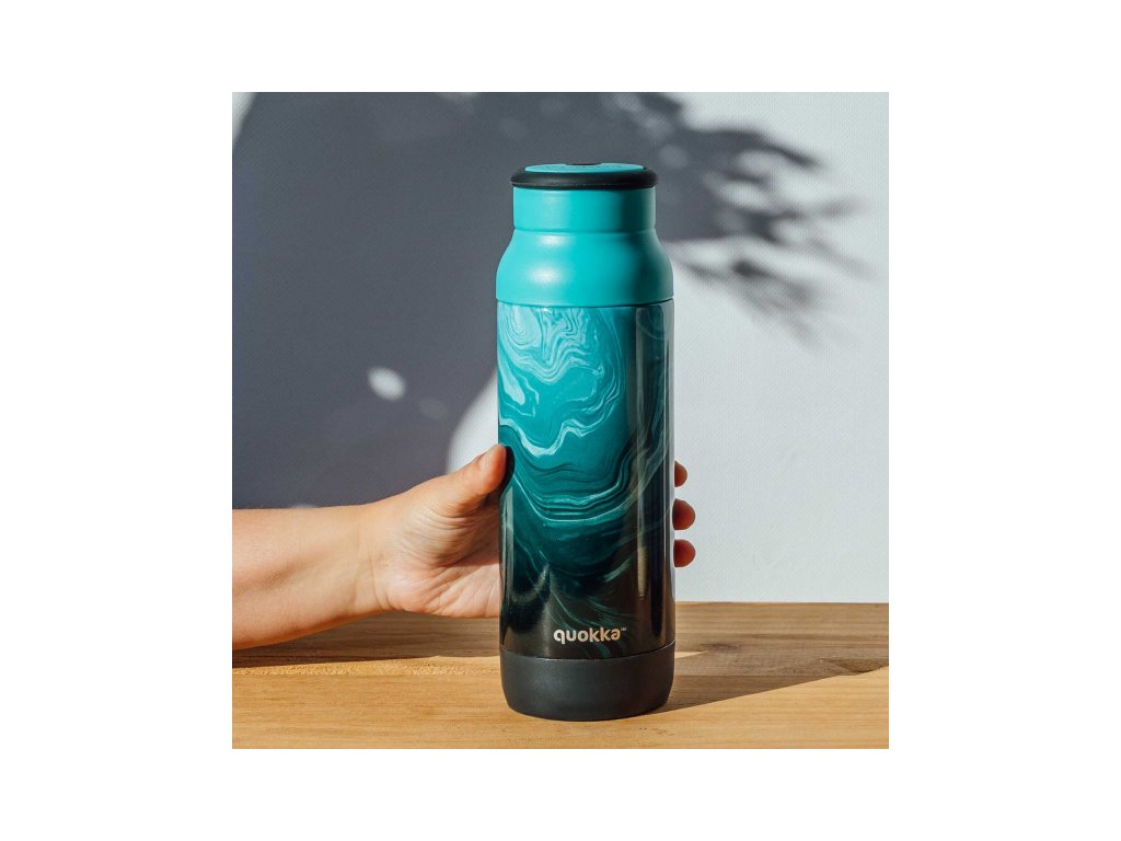Termoska Quokka Pulse z vysoko kvalitnej dvojstennej ocele so spoľahlivým, 100% tesniacim uzáverom udrží váš nápoj podľa potreby teplý alebo studený. Široké hrdlo umožňuje vloženie kociek ľadu. Termoska udrží teplotu studeného nápoja s ľadom až 48 hodín, studeného nápoja až 16 hodín a teplého nápoja až 12 hodín. Silikónové pútko, ktoré je zakomponované do viečka fľaše, uľahčuje prenášanie.