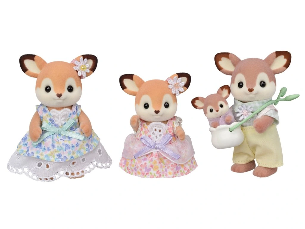 Poznaj rodinu Jeleňov Sylvanian Families. Sada obsahuje 4 roztomilé figúrky z jelenenej rodinky pokryté mäkkým semišom. Otec Marius sa vždy stará o svoju rodinu. Mamička Primrose miluje majstrovanie a väčšinu dekorácií v dome si vyrobila sama. Malá Sofia píše básne, a keď si chce dať pauzu, ide si zabehať. Svet spoznáva veľkou rýchlosťou, na rozdiel od svojho malého bračeka Kaia, ktorý radšej leží v kľude pod stromom a sleduje listy. Rodina jeleňov má roztomilé charakteristické uši. Figúrku bábätka je možné umiestniť do nosidla v tvare kvetiny, aby ho mohli nosiť so sebou. Hračky Sylvanian Families rozvíjajú predstavivosť a povzbudzujú deti k hraniu rolí. Hranie s figúrkami Sylvanian Families rozvíja kreativitu a učí emócie prostredníctvom vytvárania a rozprávania príbehov na základe každodenných skúseností a pozorovaní sveta. Figúrky Sylvanian Families majú pohyblivé končatiny a hlavu. Balené v krabičke. Rozmery balenia: 13 x 17,6 x 5,5 cm. Vek: 3+