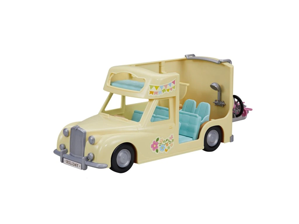 Užite si varenie, grilovanie, jazdu na bicykli, rybárčenie a ďalšie zábavné aktivity v kempe s Rodinným obytným vozom so siedmimi sedadlami. V obytnom aute môžu spať dve dospelé figúrky, dve baby figúrky, dvojčatá a bábätko. Sedadlá možno sklopením premeniť na posteľ. Kuchyňa schovaná pod palubnou dekou obsahuje panvicu, kukuricu a grilovanú rybu. Ulovte čerstvé ryby s rybárskym prútom a prineste ich vo vedre. Detský horský bicykel, detský bicykel a rybársky prút možno uložiť do zadného nosiča. Užite si viac zábavy s ďalšími figúrkami a doplnkami Sylvanian Families (predáva sa samostatne). Obytný automobil je kompatibilný s Karavanom (5045, predajné samostatne). Herné sady a figúrky Sylvanian Families sú nadčasové a vysoko kvalitné hračky. Hra podnecuje predstavivosť dieťaťa. Obsahuje: 1x Obytný voz, 2x sedačka/posteľ, 1x detská sedačka, 1x kuchynský kút, 1x stôl, 1x panvica, 1x kukurica, 1x grilovaná ryba, 1x detský horský bicykel, 1x detský bicykel, 1x helma, 1x rybársky prút, 1x vedro , 1x ryba, 1x ďalekohľad, 1x zadný nosič. Rozmery vozidla: 4,2 x 28,5 x 12,8 cm. Rozmery balenia: 25 x 34 x 16 cm. Vek: 3+. Video: https://www.youtube.com/watch?v=6i5MNsj7MQg