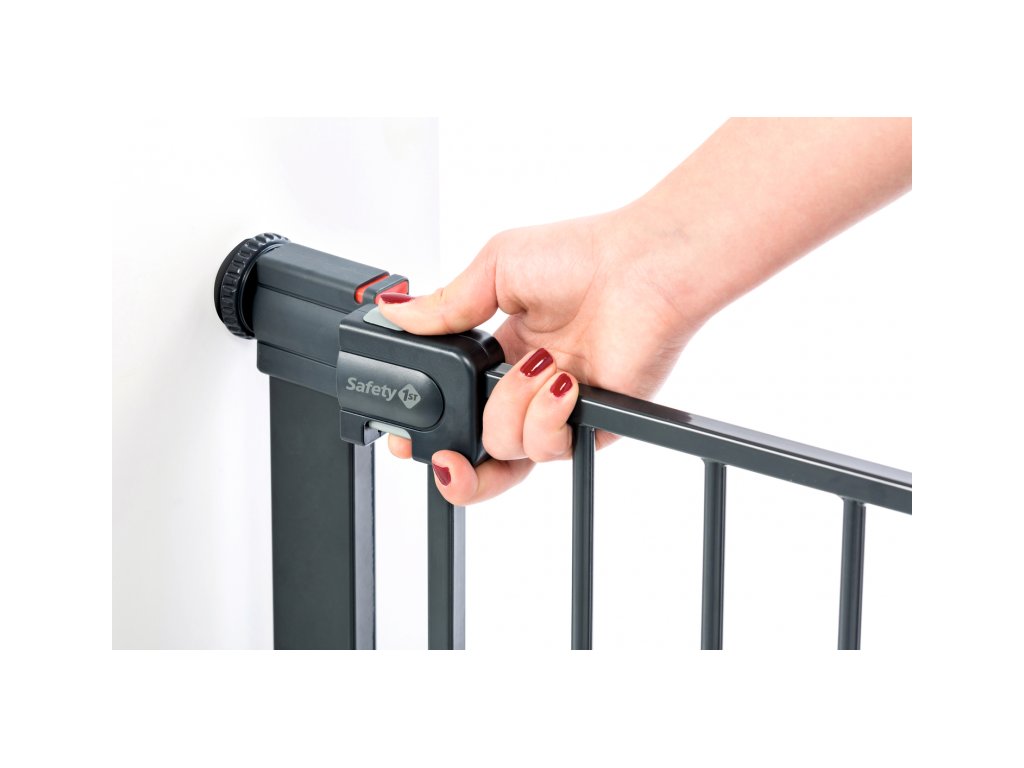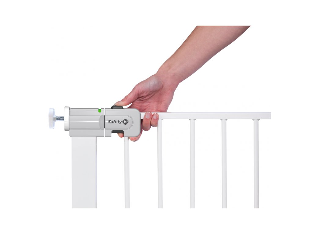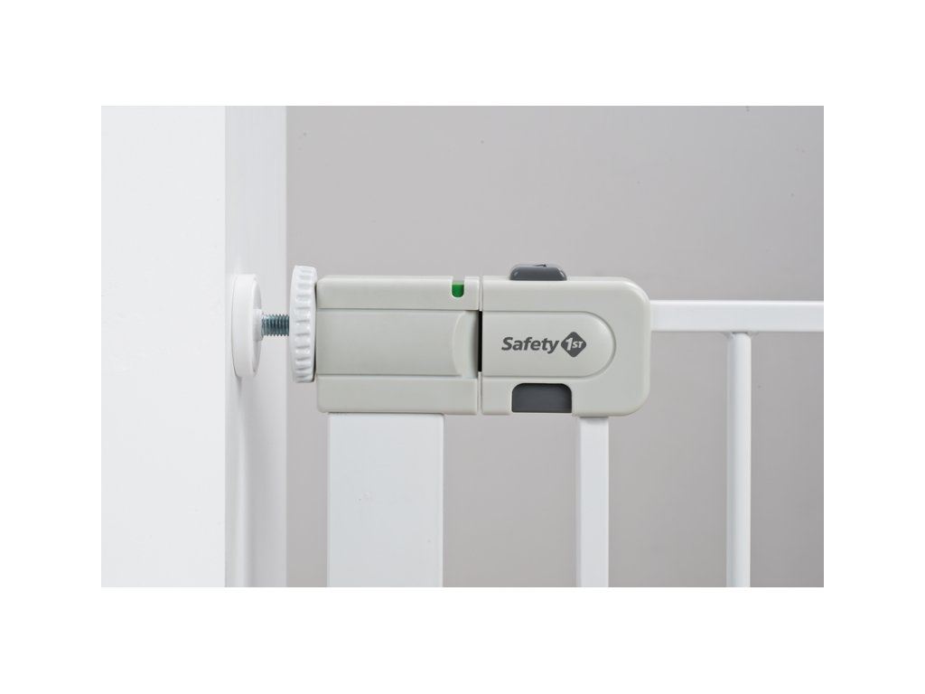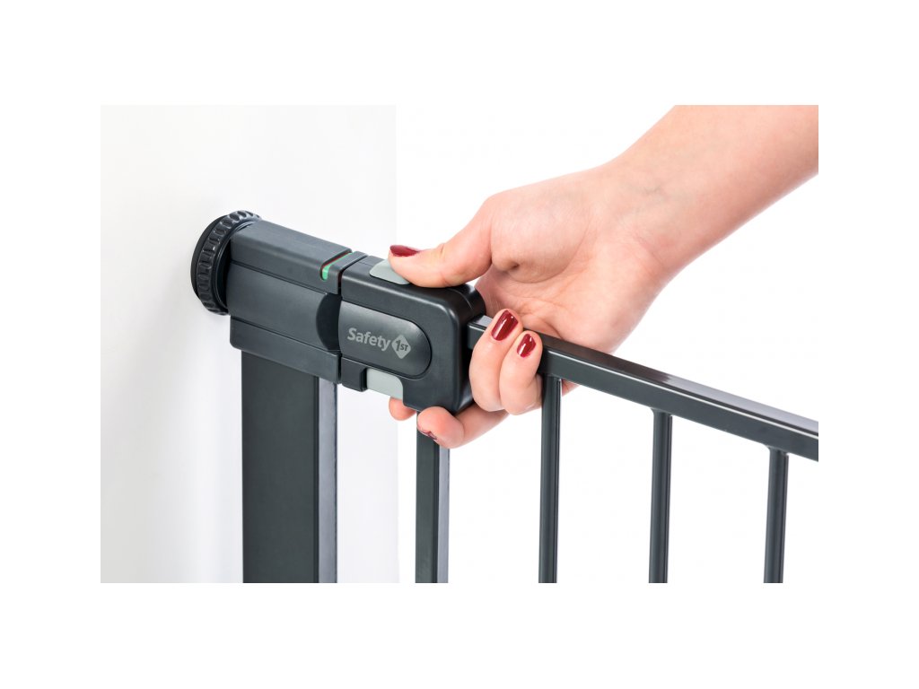 Safety 1st Easy Close Metal je kovová zábrana, ktorú je možné otvárať oboma smermi. Dvojitý zaisťovací mechanizmus zvyšuje bezpečnosť. Vďaka vizuálnemu indikátoru Secure Tech® budete mať istotu, že je zábrana správne zatvorená. Jednoduchá inštalácia bez vŕtania. Zábrana je vhodná do dverí či priestoru medzi stenami s rozmermi 73 cm až 80 cm a možno ju rozšíriť pomocou samostatne dostupných predĺžení až na 136 cm.
