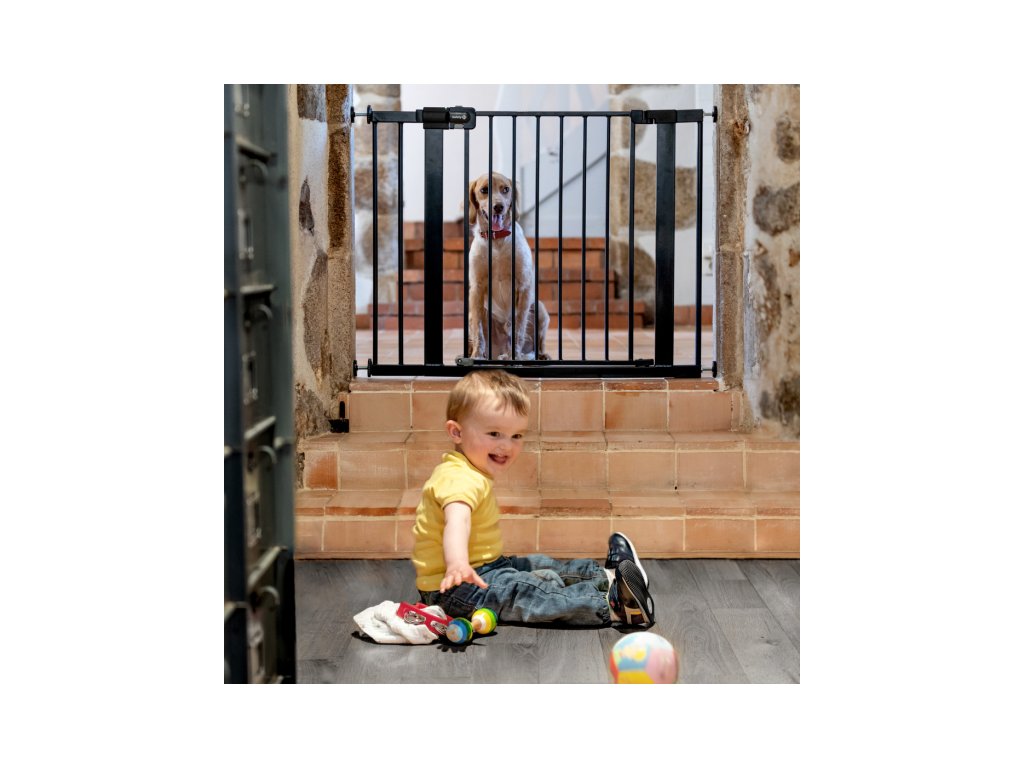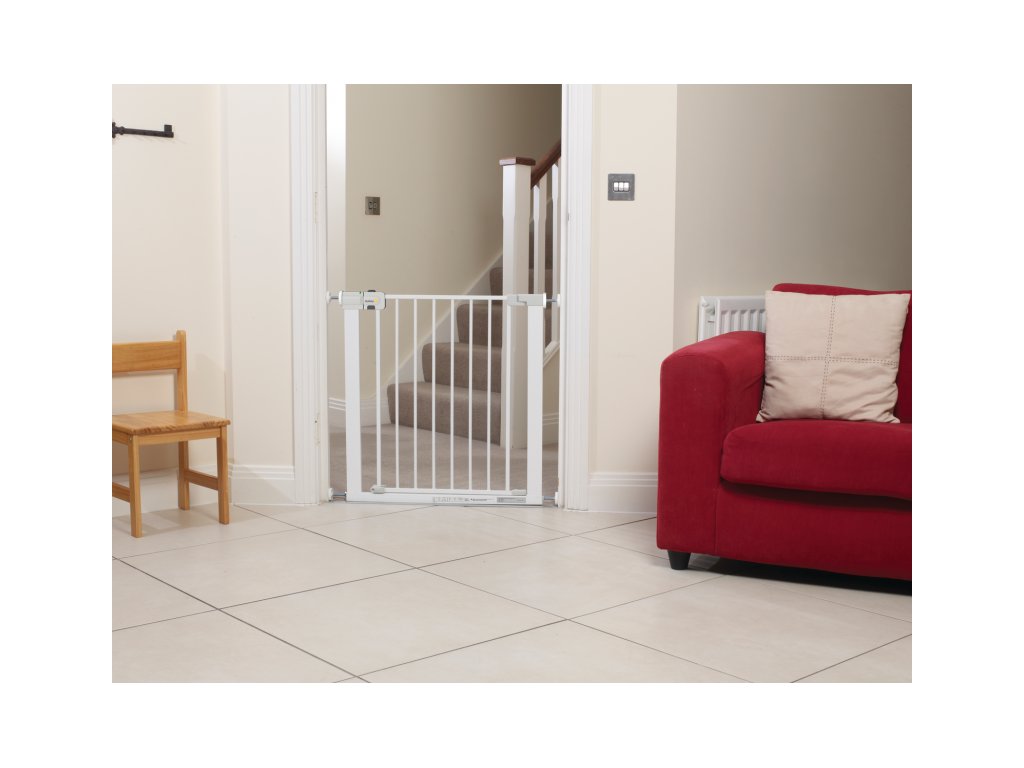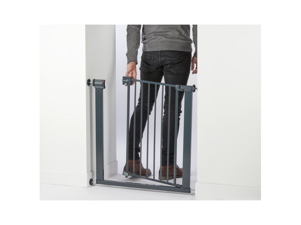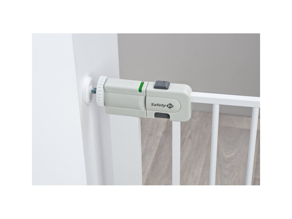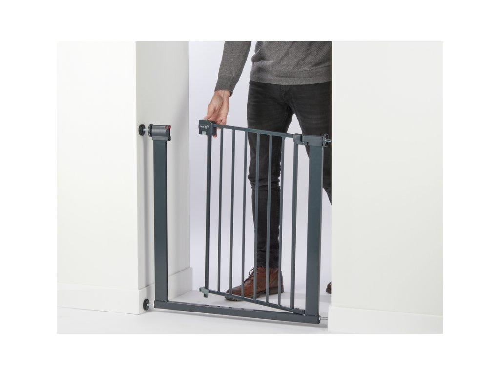 Safety 1st Easy Close Metal je kovová zábrana, ktorú je možné otvárať oboma smermi. Dvojitý zaisťovací mechanizmus zvyšuje bezpečnosť. Vďaka vizuálnemu indikátoru Secure Tech® budete mať istotu, že je zábrana správne zatvorená. Jednoduchá inštalácia bez vŕtania. Zábrana je vhodná do dverí či priestoru medzi stenami s rozmermi 73 cm až 80 cm a možno ju rozšíriť pomocou samostatne dostupných predĺžení až na 136 cm.