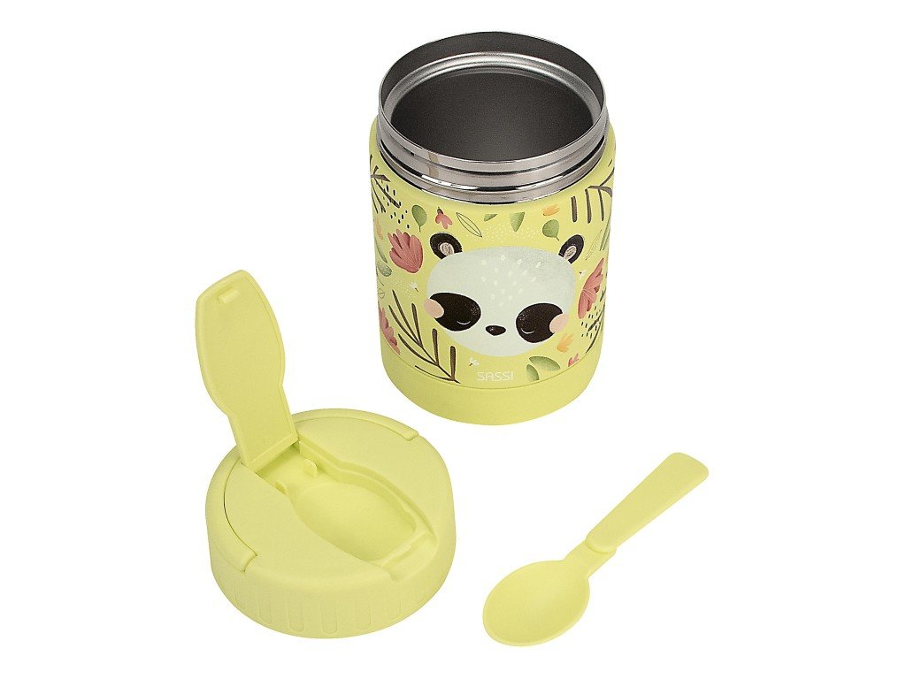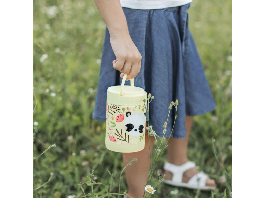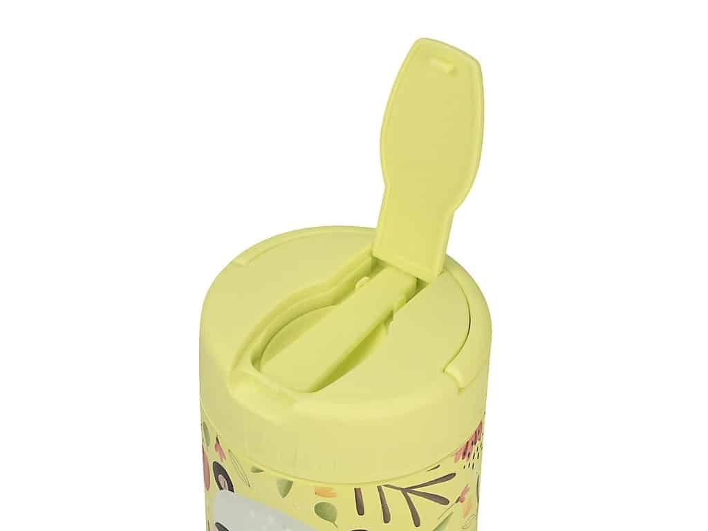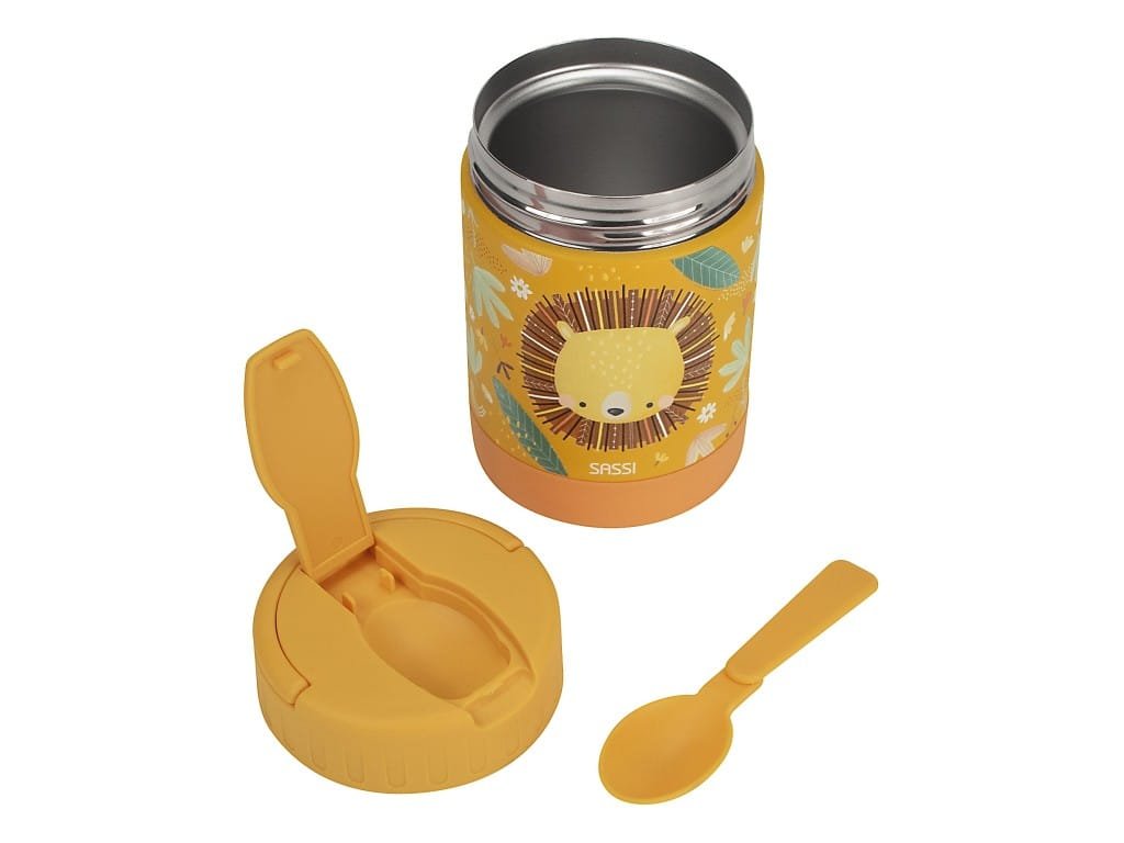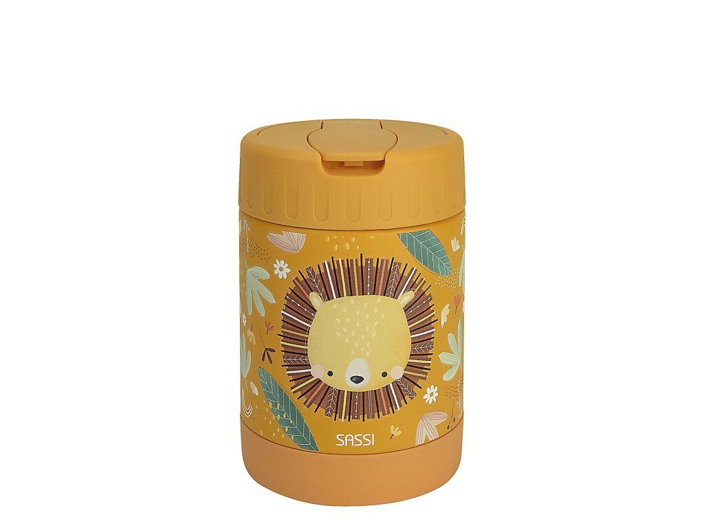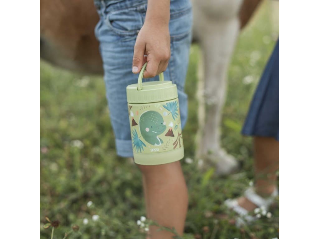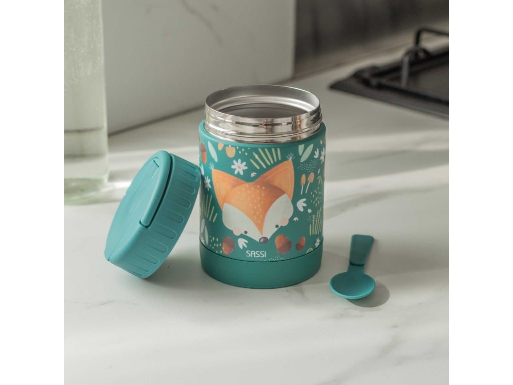 Termoska na jedlo s motívom múdreho sloníka Chewyho je ideálna na udržiavanie detských jedál teplých doma, v škôlke alebo na cestách. Vyrobená z kvalitnej nehrdzavejúcej ocele s dvojitou stenou, udrží jedlo teplé (alebo studené) celé hodiny a zabezpečí, že bude vždy chutné a pripravené na podávanie. Vzduchotesné viečko a kompaktný dizajn umožňujú bezpečné prenášanie v batohu či taške. Táto izolovaná termoska je ideálna na prvé príkrmy, polievky alebo pyré, ľahko sa čistí a je úplne bez BPA a PVC.