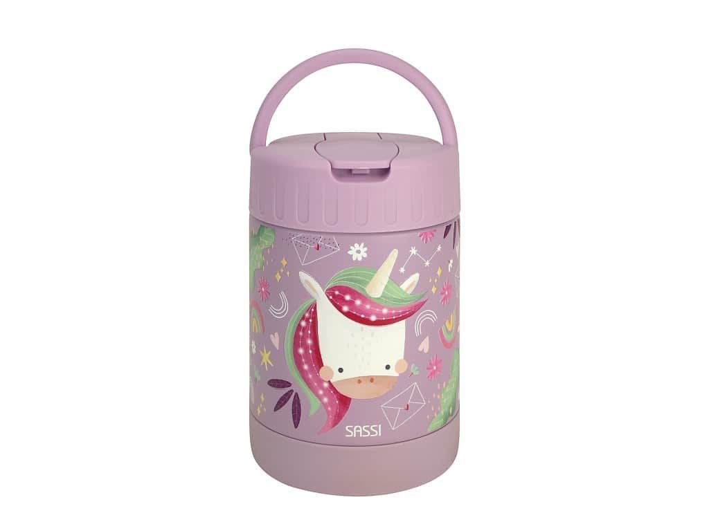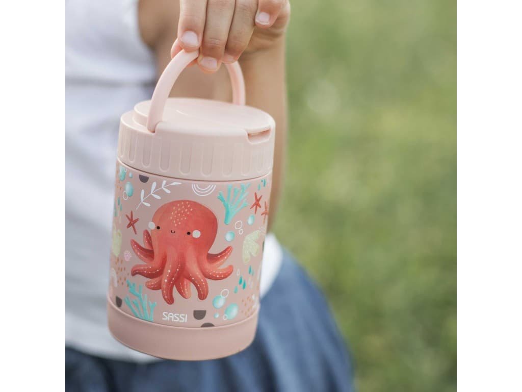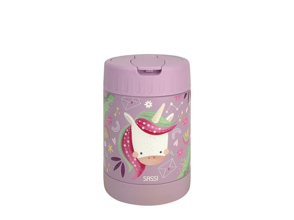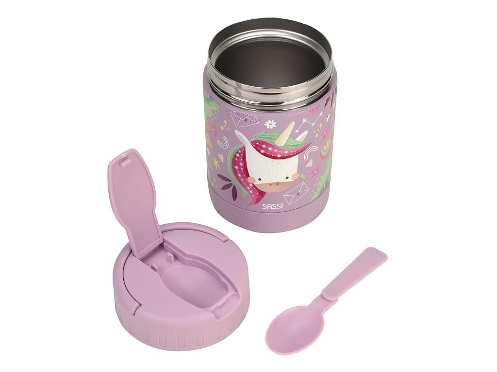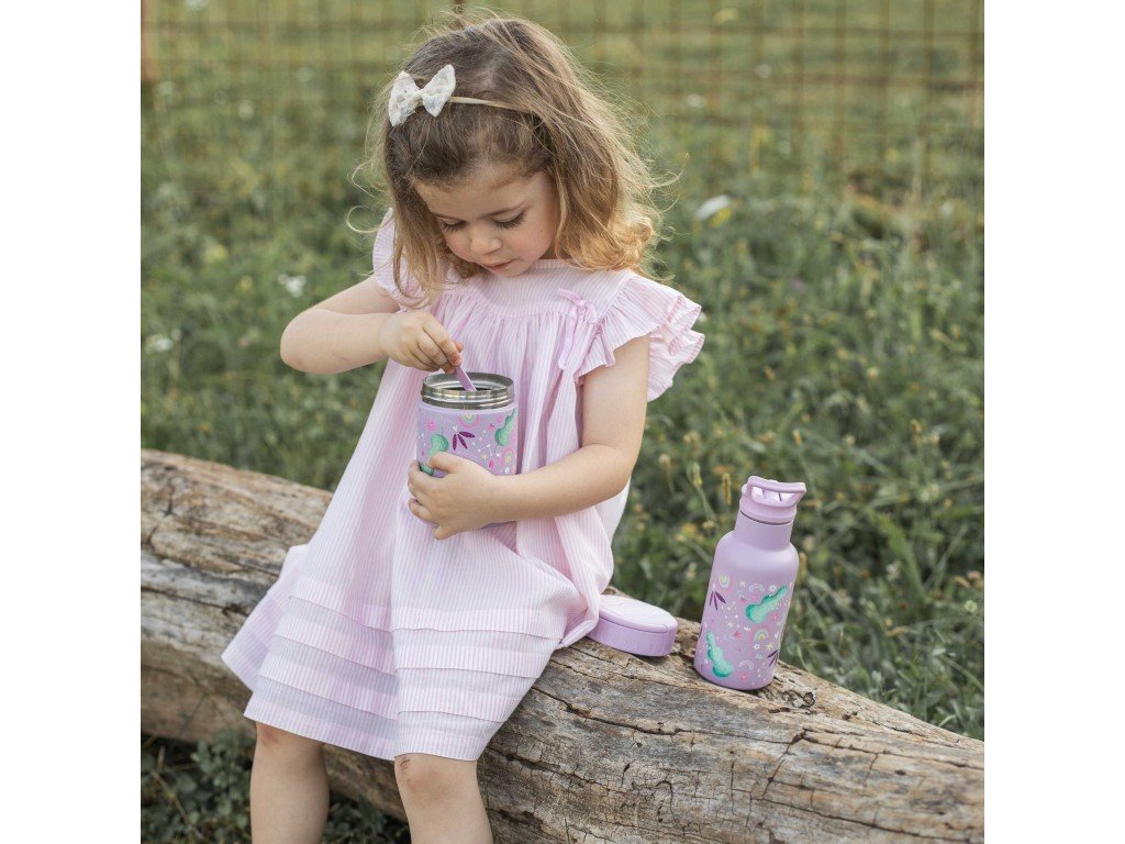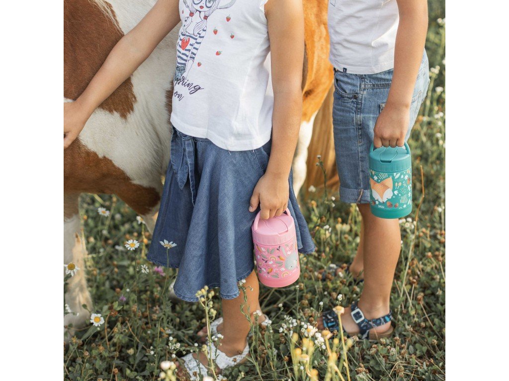 Termoska na jedlo s motívom múdreho sloníka Chewyho je ideálna na udržiavanie detských jedál teplých doma, v škôlke alebo na cestách. Vyrobená z kvalitnej nehrdzavejúcej ocele s dvojitou stenou, udrží jedlo teplé (alebo studené) celé hodiny a zabezpečí, že bude vždy chutné a pripravené na podávanie. Vzduchotesné viečko a kompaktný dizajn umožňujú bezpečné prenášanie v batohu či taške. Táto izolovaná termoska je ideálna na prvé príkrmy, polievky alebo pyré, ľahko sa čistí a je úplne bez BPA a PVC.