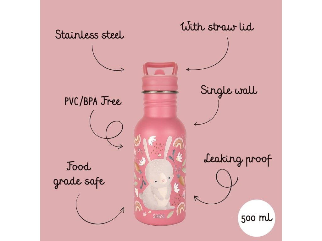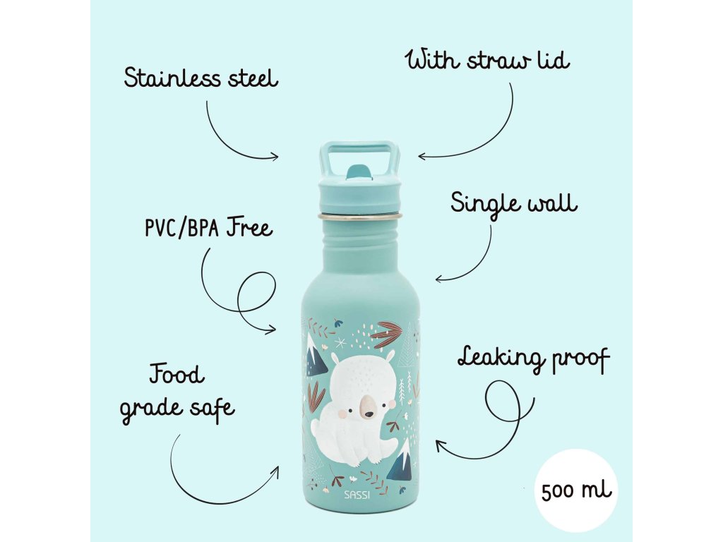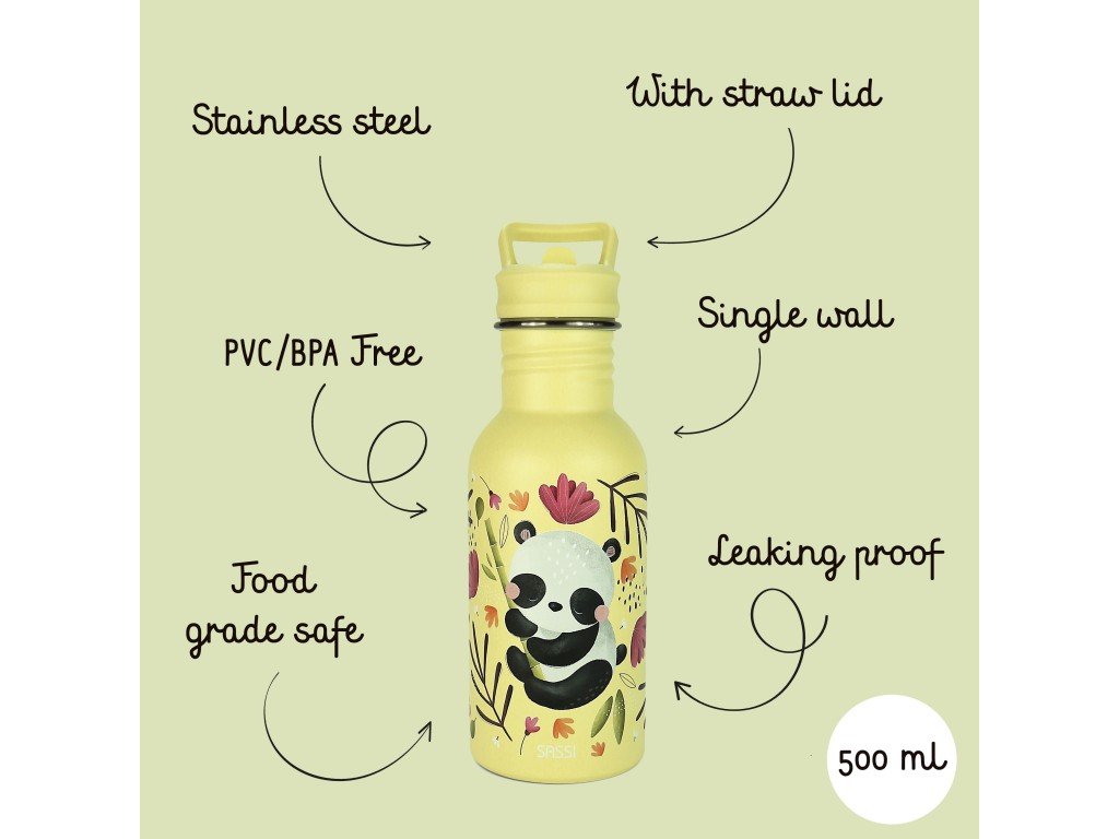 Navrhnutá tak, aby vydržala – detská fľaša SASSI z nehrdzavejúcej ocele s objemom 500 ml je dokonalou kombináciou odolnosti, bezpečnosti a štýlu, vytvorená tak, aby sprevádzala vašich najmenších na všetkých ich dobrodružstvách.