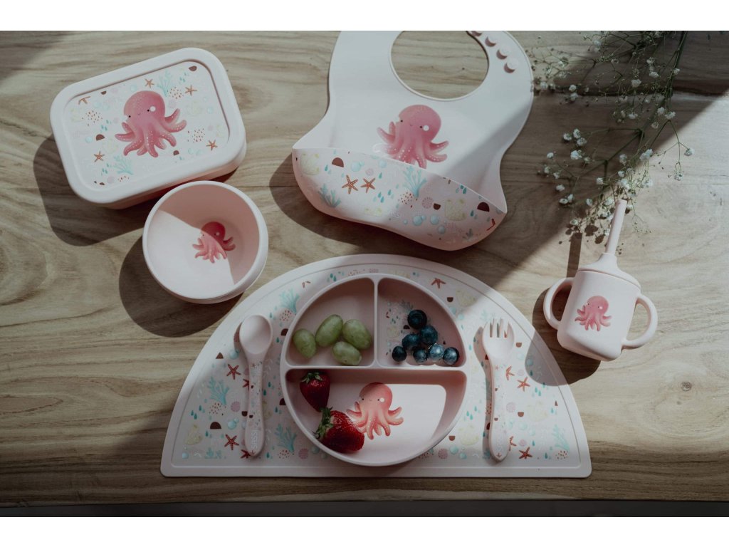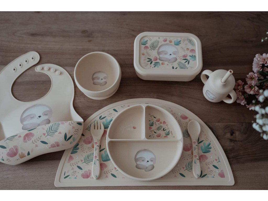 Vyrobené zo 100 % potravinárskeho silikónu. Jedálenské súpravy SASSI neobsahujú škodlivé chemikálie ako BPA, PVC a ftaláty, čím zaručujú, že jedlo vášho dieťatka bude podávané v čo najčistejšom a najbezpečnejšom prostredí. Mäkká a hladká štruktúra silikónu robí každý kúsok príjemným na dotyk, zatiaľ čo pružnosť materiálu zaisťuje odolnosť voči nevyhnutným nárazom a pádom, ktoré sprevádzajú detské stolovanie. Naše silikónové výrobky spĺňajú prísne bezpečnostné normy EN14372.