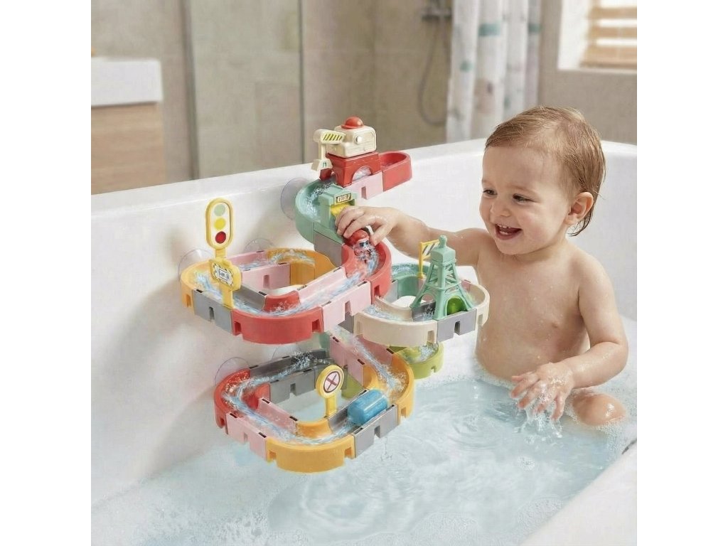 Guľôčková dráha je ideálna ako hra do vane, senzorických vaničiek aj na stolové aktivity doma či v škôlke. Dieliky umožňujú rýchlo meniť konfigurácie, vďaka čomu vznikajú stále nové vodné dobrodružstvá, ktoré deti prirodzene vtiahnu do hry a dlhodobo zabavia. Nevhodné pre deti do 3 rokov. Používať len pod priamym dohľadom dospelej osoby.