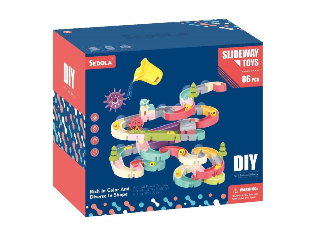DIY Šmykľavka do vody 86 ksNekonečné vodné dobrodružstváDIY Šmykľavka do vody 86 ks prináša deťom maximálne možnosti pre kreatívnu a zábavnú hru vo vode. Vďaka až 86 dielikom si môžu deti skladať vlastné šmykľavky a dráhy, sledovať pohyb guličiek či malých hračiek vo vode a vytvárať nekonečné kombinácie trás.Súčasťou balenia sú guličky, kačičky, nádoba na vodu aj množstvo doplnkov, ako vodný mlyn, vodné koleso, stromy a domček, ktoré fungujú ako prekážky pre vodu a výrazne obohacujú herný zážitok. Deti môžu usmerňovať tok vody, meniť jej smer a sledovať, ako jednotlivé prvky ovplyvňujú pohyb po dráhe.Táto vodná stavebnica podporuje jemnú motoriku, logické myslenie, tvorivosť aj priestorovú predstavivosť. Šmykľavka je ideálna ako hra do vane, senzorických vaničiek aj na interaktívne aktivity doma či v škôlke. Jednoduché spojenie dielikov umožňuje rýchlo meniť konfigurácie a vytvárať stále nové, pestré vodné dobrodružstvá. Nevhodné pre deti do 3 rokov. Používať len pod priamym dohľadom dospelej osoby.