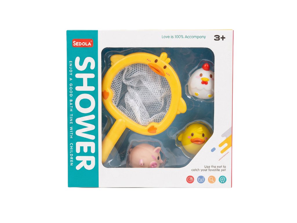Hračky na potápanie + podberák FarmaPotápačský set s kačičkou, kuriatkom a prasiatkomHračky na potápanie a podberák Farma premenia každé kúpanie na veselú hru so zvieratkami z farmy. V sete nájdete farebný plastový podberák v tvare kačičky a tri plávajúce hračky – kuriatko, kačičku a prasiatko – ideálne na chytanie, potápanie a vymýšľanie vlastných príbehov vo vani alebo bazéne.Mäkký, príjemný materiál hračiek je šetrný k detským rúčkam a ľahko sa udržiava čistý. Deti si pri hre prirodzene rozvíjajú motoriku, koordináciu oko–ruka aj fantáziu, keď sa snažia zvieratká pod vodou nájsť a chytiť do sieťky. Set je vhodný pre deti od 3 rokov a skvele sa hodí ako darček pre všetkých malých milovníkov vody a zvieratiek.Nevhodné pre deti do 3 rokov. Používať len pod priamym dohľadom dospelej osoby.