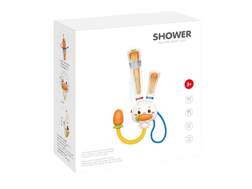Sprcha do vane ZajačikRoztomilý zajačik spríjemní umývanieSprcha do vane Zajačik premení obyčajné kúpanie na hravú chvíľu, na ktorú sa deti budú tešiť každý večer. Základňa so zajačikom sa pomocou prísaviek pripevní na stenu vane alebo obklad a ponorné čerpadlo vo vode zabezpečí cirkuláciu vody. Po stlačení tlačidla sa z jednej alebo oboch „uškatých“ hlavíc spustí jemný prúd vody, pričom je možné nastaviť, či voda ide z jedného uška, z druhého alebo z oboch naraz.Deti môžu prúd využívať na polievanie hračiek, vedierok či vlastných rúčok a pritom sa prirodzene učia, že sprchovanie môže byť zábava. Ohybná hadica a tvar hlavice umožňujú nasmerovať vodu presne tam, kde je potrebné, takže oplachovanie šampónu z vlasov je pohodlnejšie a menej nepríjemné.Sprcha funguje na batérie, ktoré nie sú súčasťou balenia, a voda sa berie priamo z vane, takže nie je nutné púšťať ďalšiu vodu z kohútika, čo šetrí vodu aj čas. Sprcha do vane Zajačik je vyrobená z kvalitného plastu s hladkými hranami, vhodná pre deti od 3 rokov. Nevhodné pre deti do 3 rokov. Používať len pod priamym dohľadom dospelej osoby.