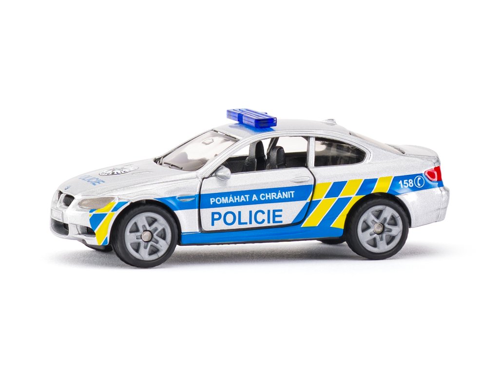 Kovový model Polícia BMW M3 coupé je vyrobený ako verná kópia policajného vozidla v českej verzii. Tento model SIKU sa vyznačuje realistickými detailmi a je vyrobený z tlakovo zliatinových kovových a plastových komponentov. Model má otváracie dvere a gumové pneumatiky. Balené v blistri. Rozmery modelu: 3 x 3,2 x 8 cm. Rozmery balenia: 7,8 x 9,5 x 4 cm. Vek: 3+